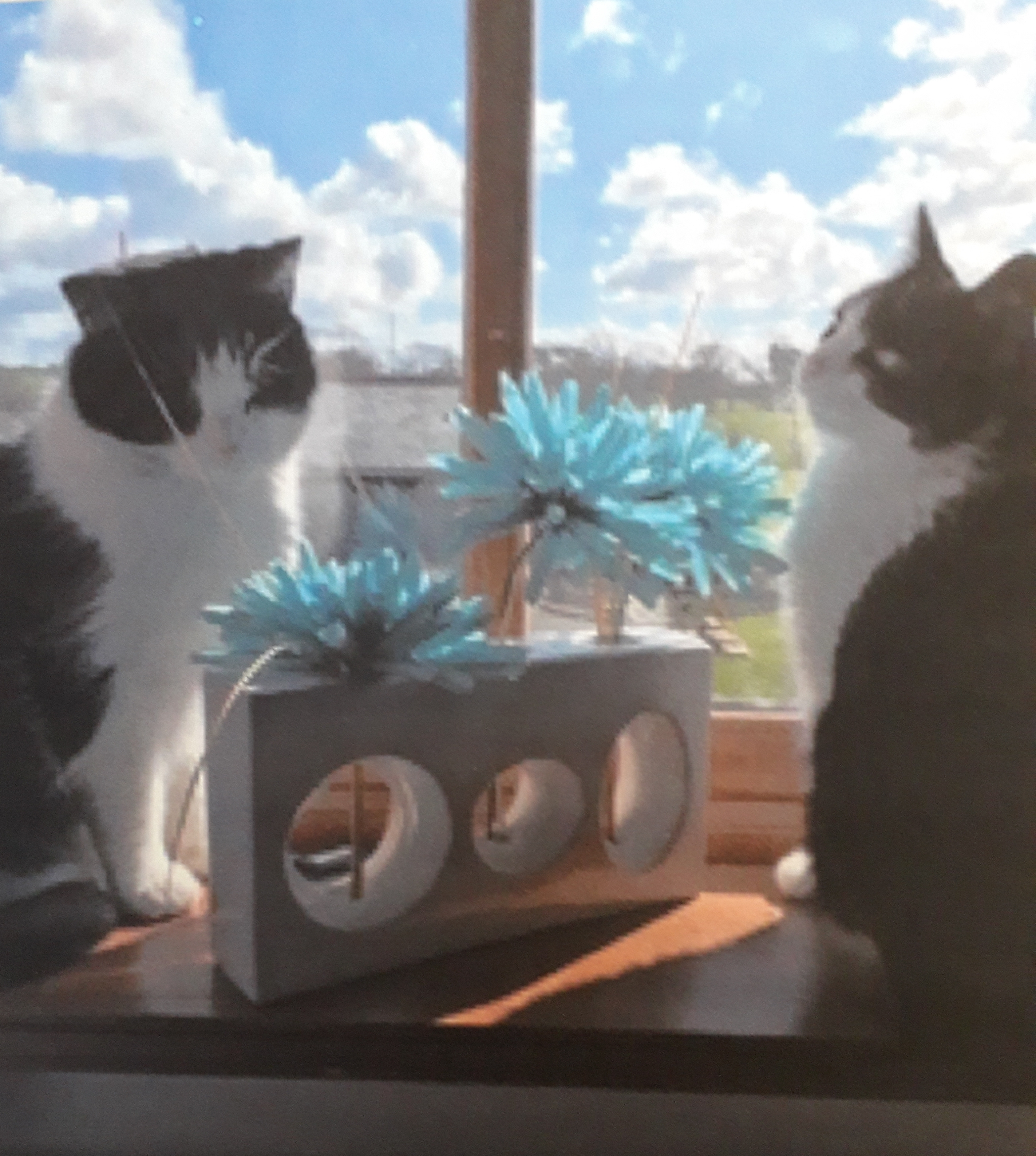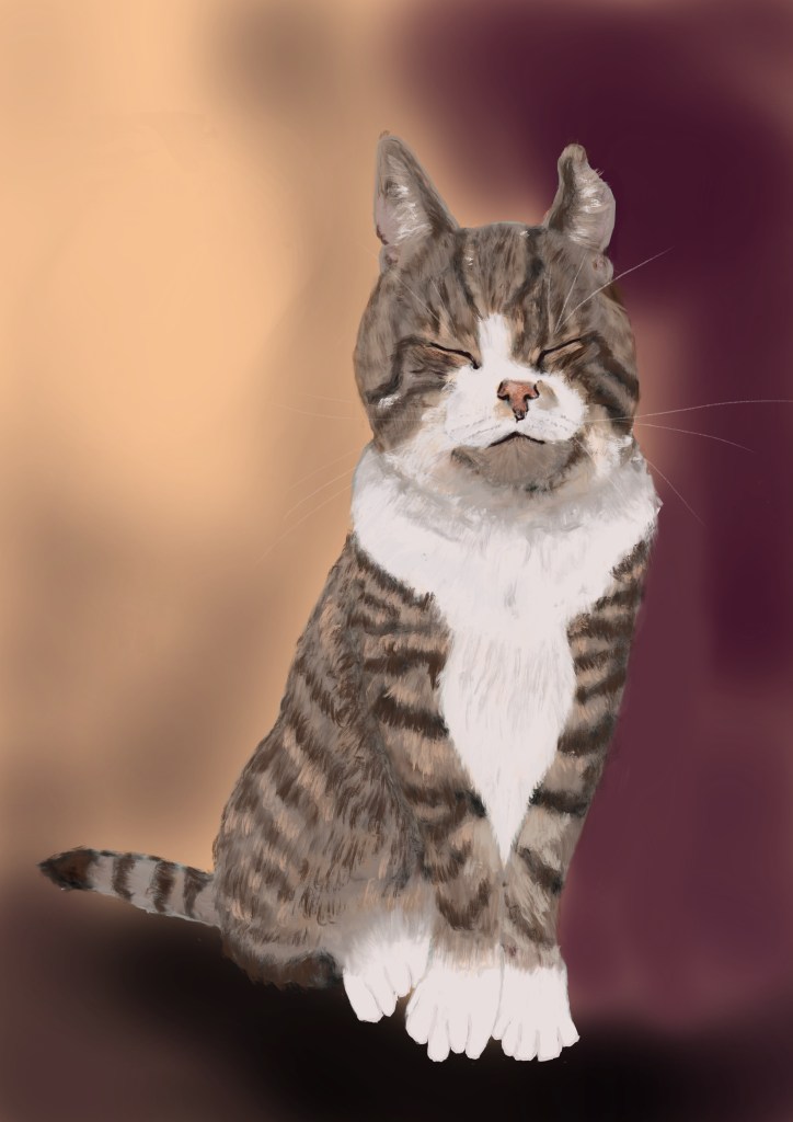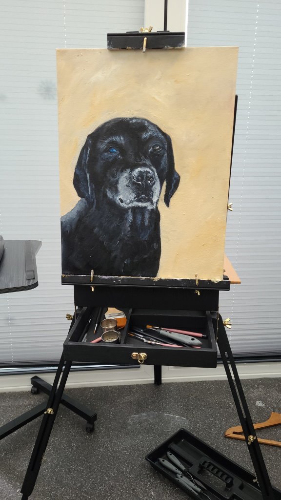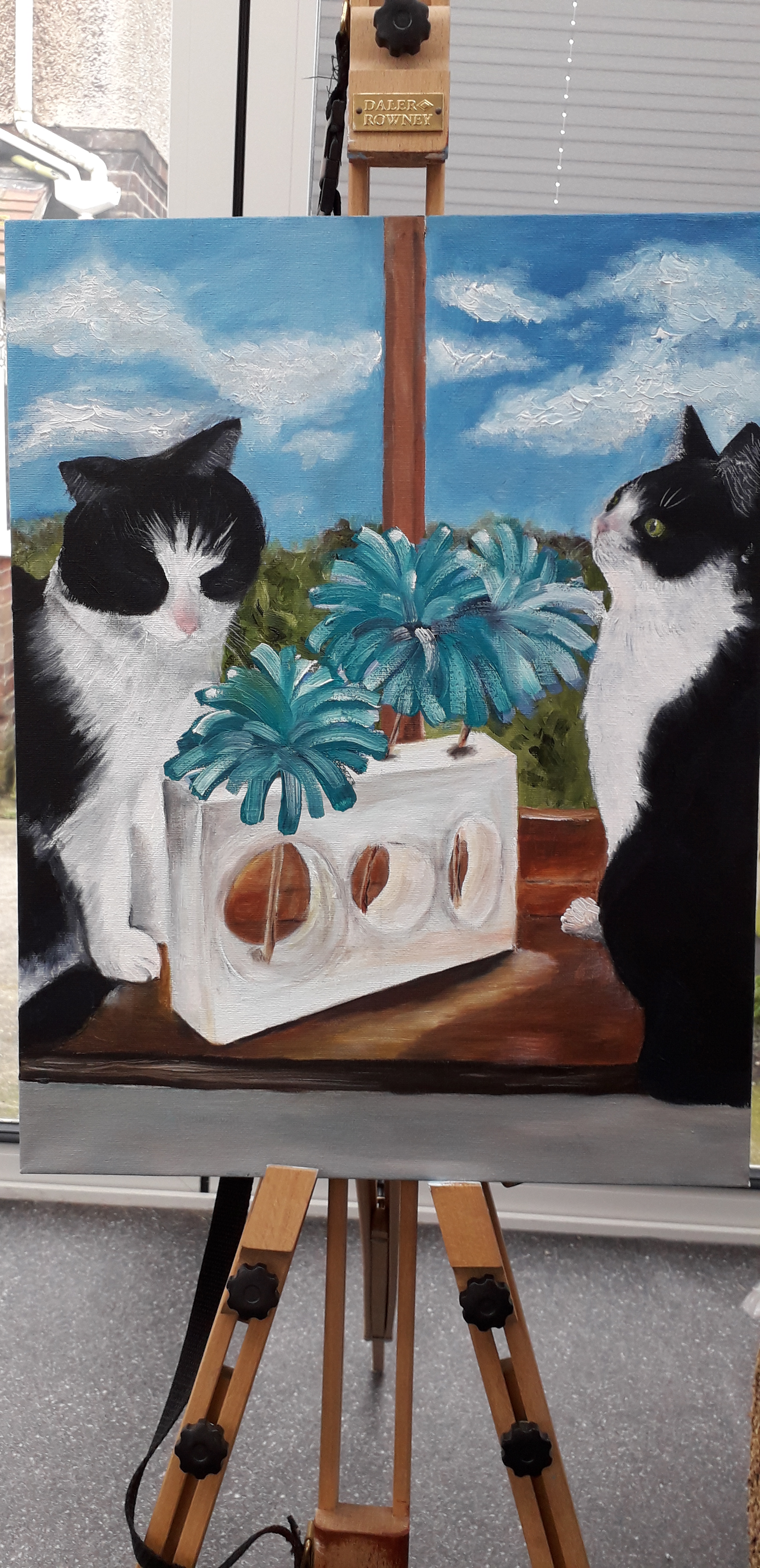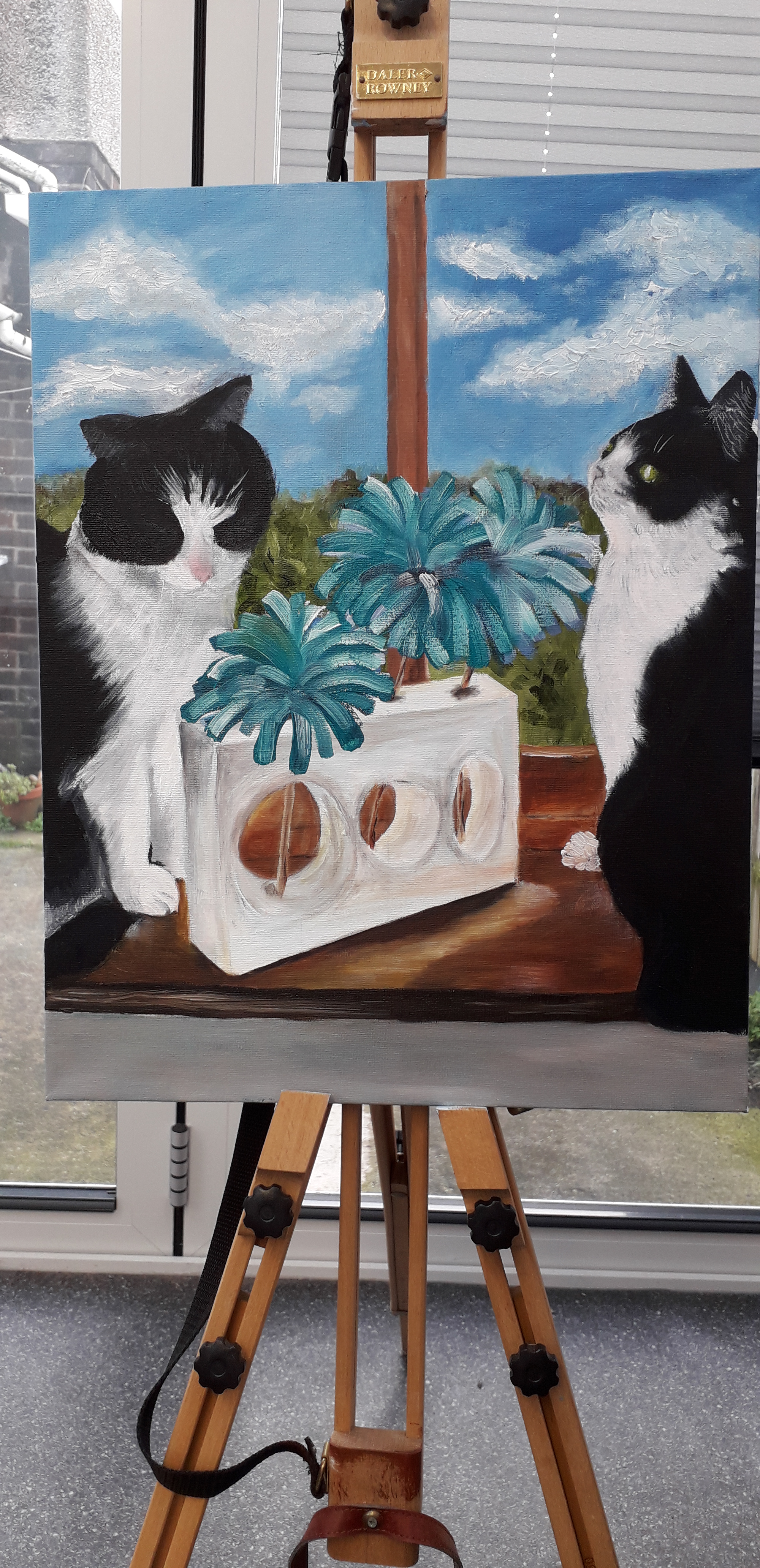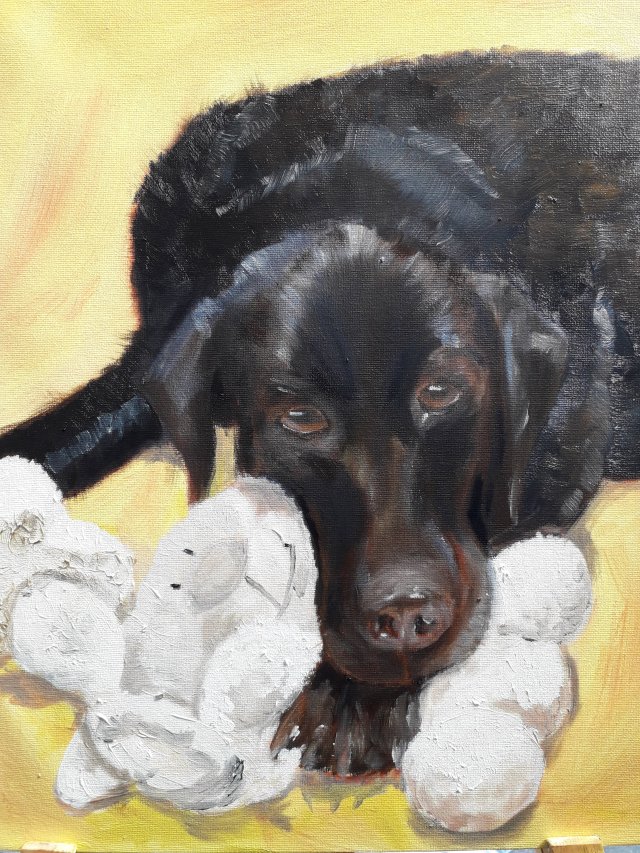 I think I’ve finished if the commissioner is happy I will varnish it. Reply back I need to pink up tha cat on the rights nose then it is done bar the vanishing, I think! The trouble is you go back to the picture and see something else that needs doing or you are not happy with. Painting animals isn’t easy it takes years to learn and I’m just at the beginning.