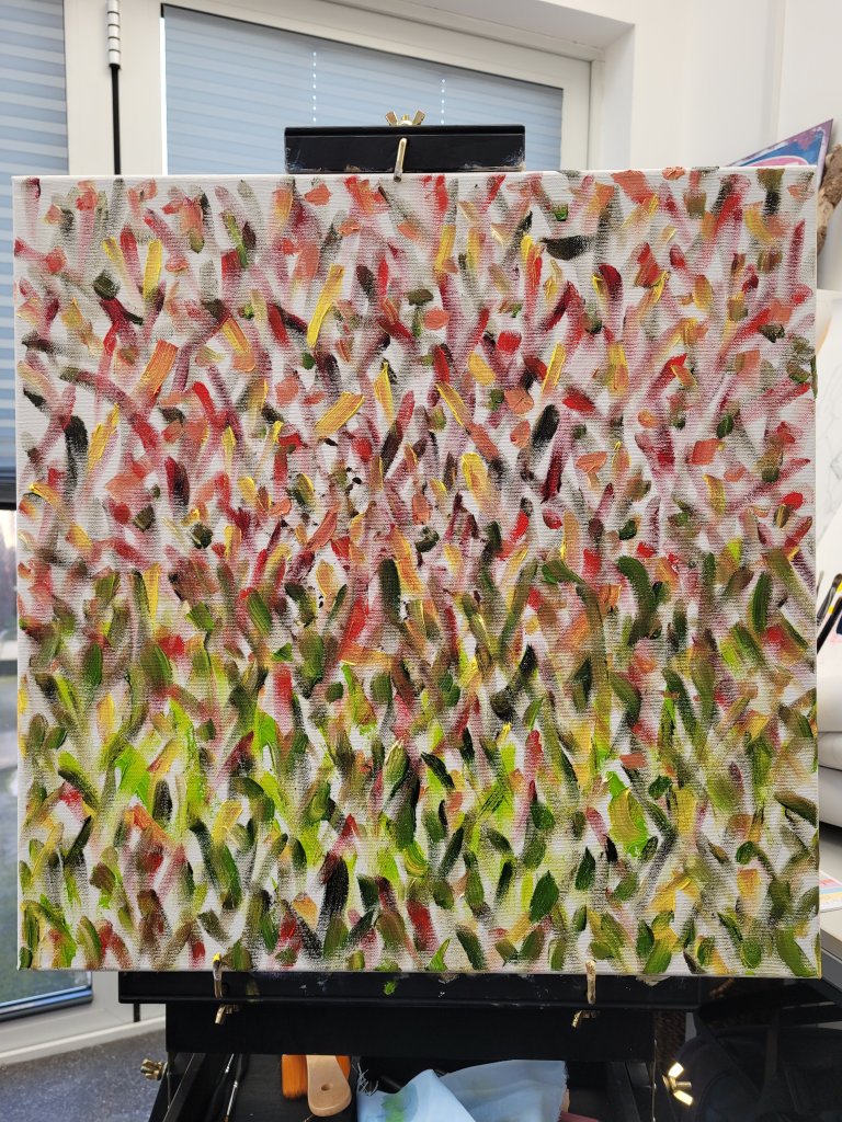Sometimes when you see a different artists work it inspires you to have a go. Last night I attended an artist talk and one of the artists mentioned was Joan Mitchell. Having looked her up I felt inspired to have a go.