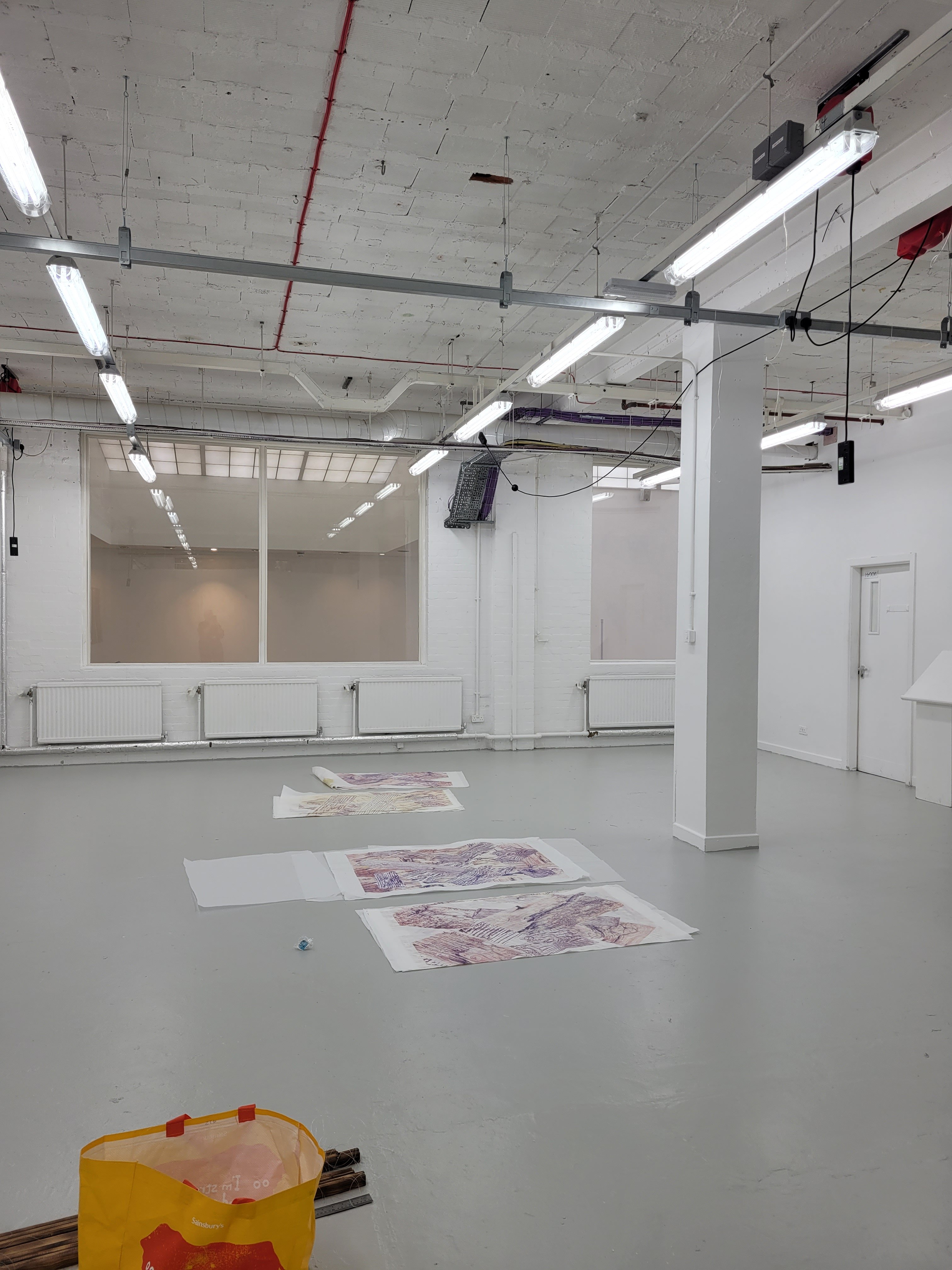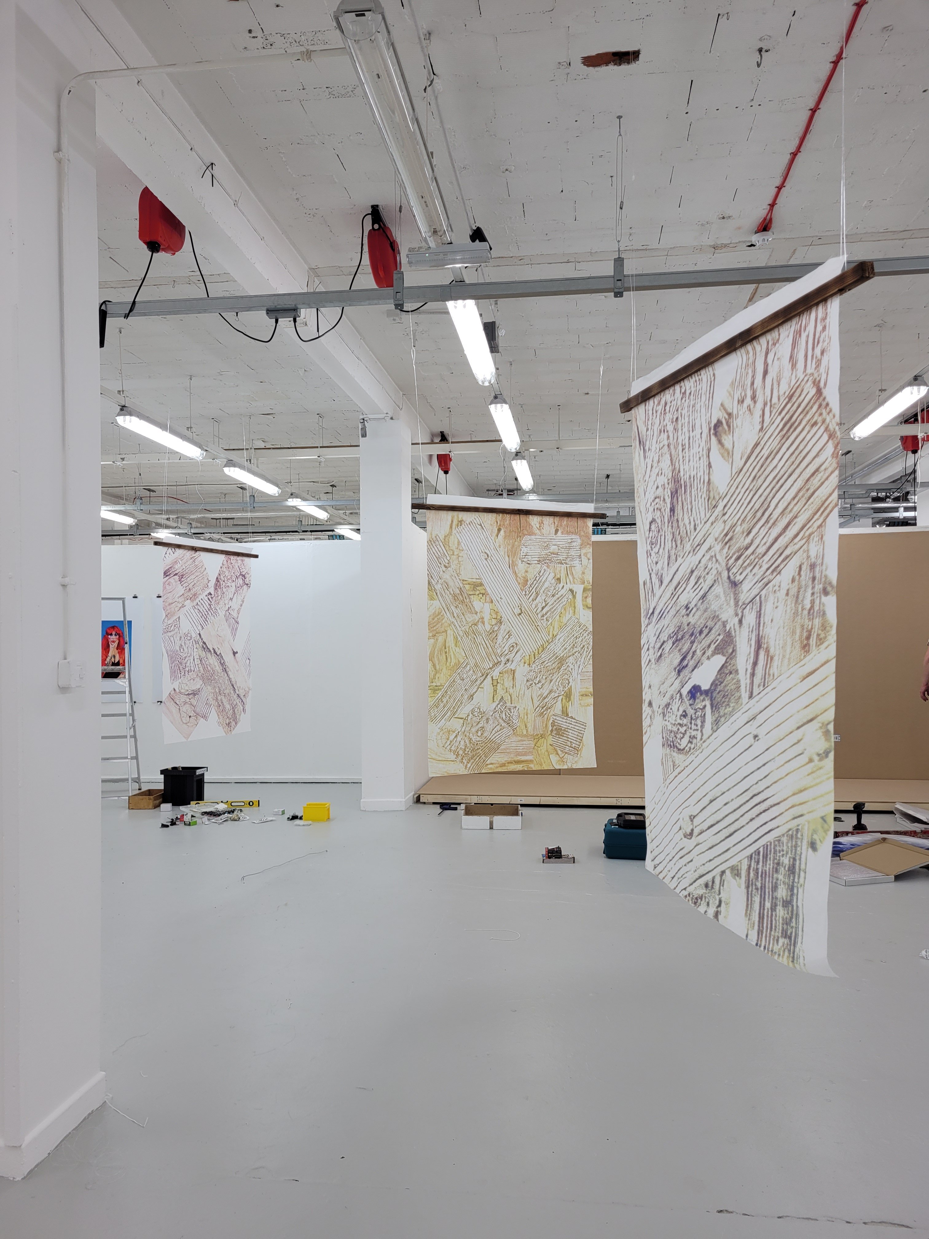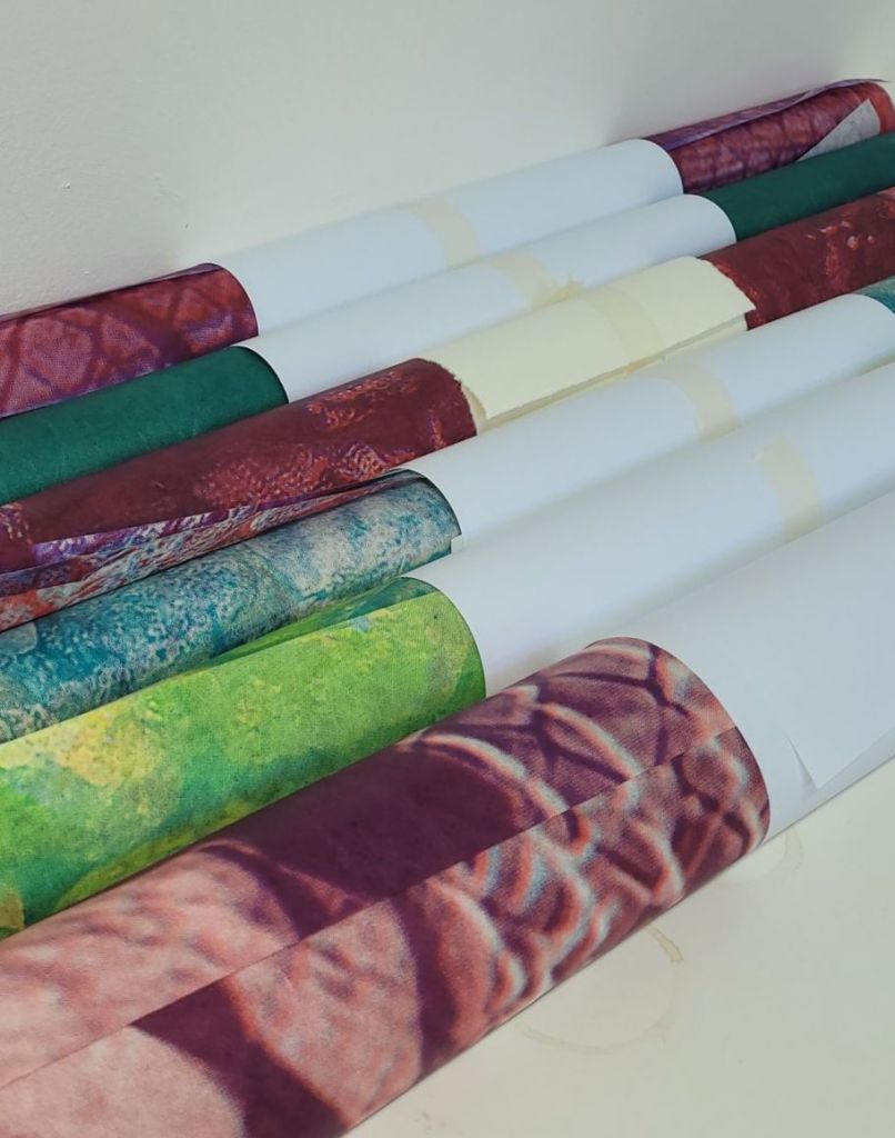 I have been making images for printing using photos I’ve taken whilst out walking. These are of barriers, I have then manipulated them in procreate to form new images. These have then been screen printed onto kozo 25gm paper.