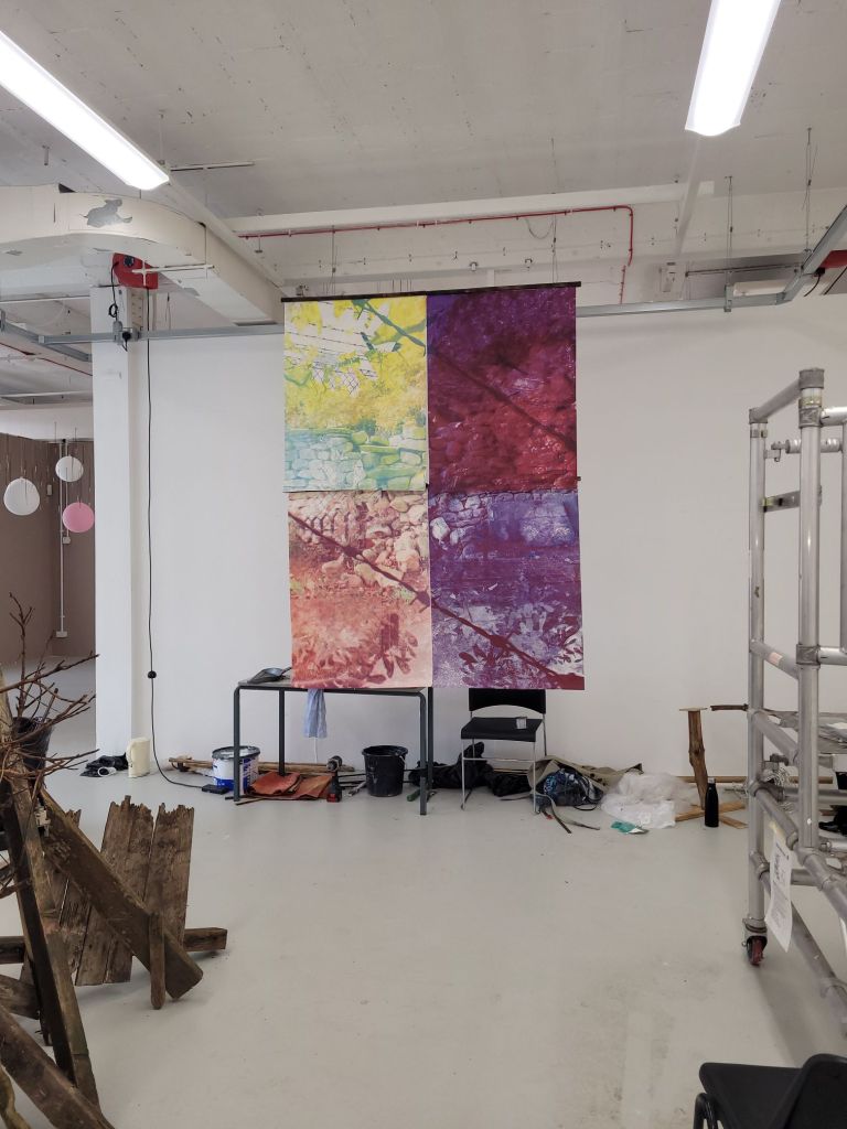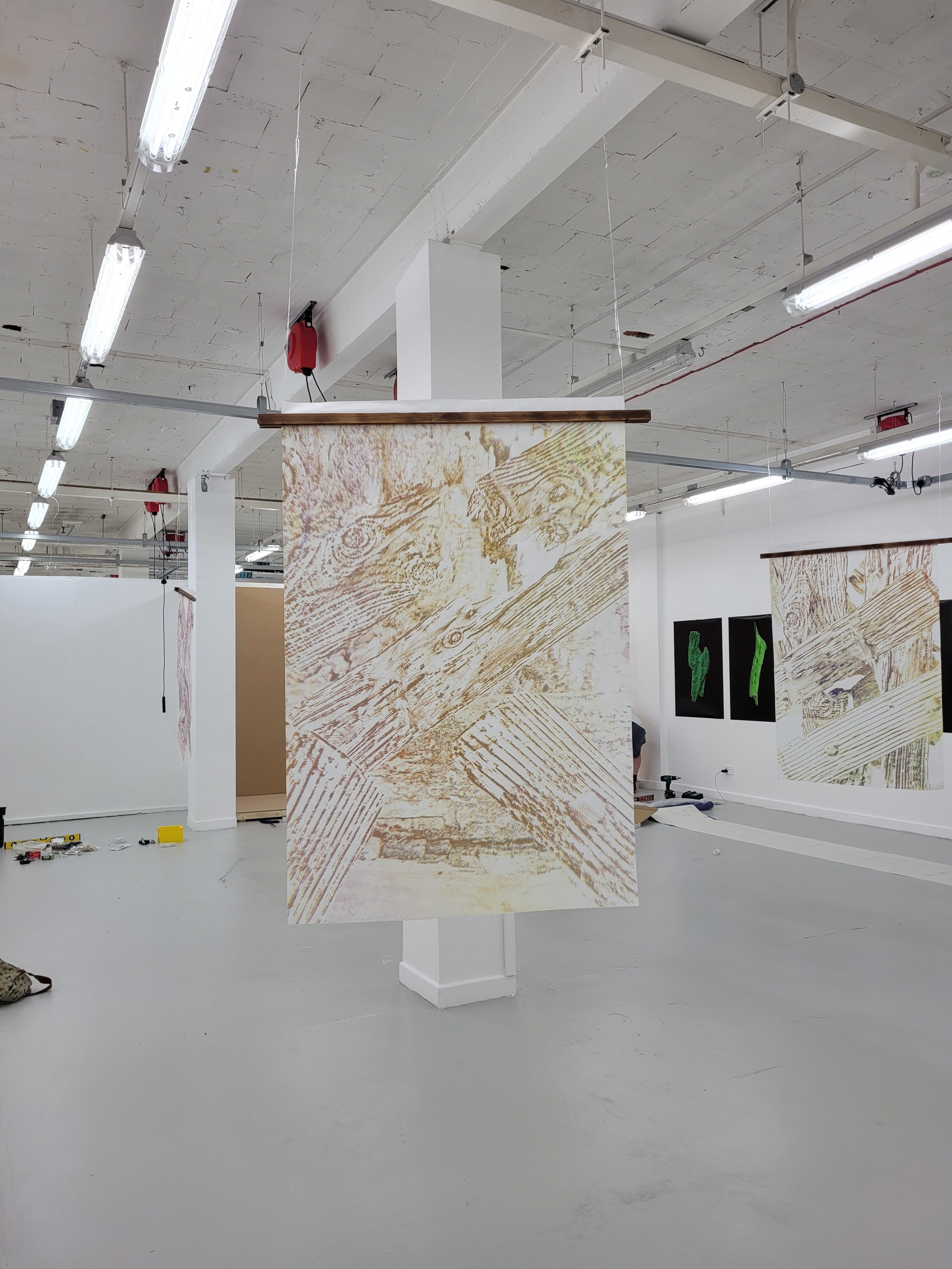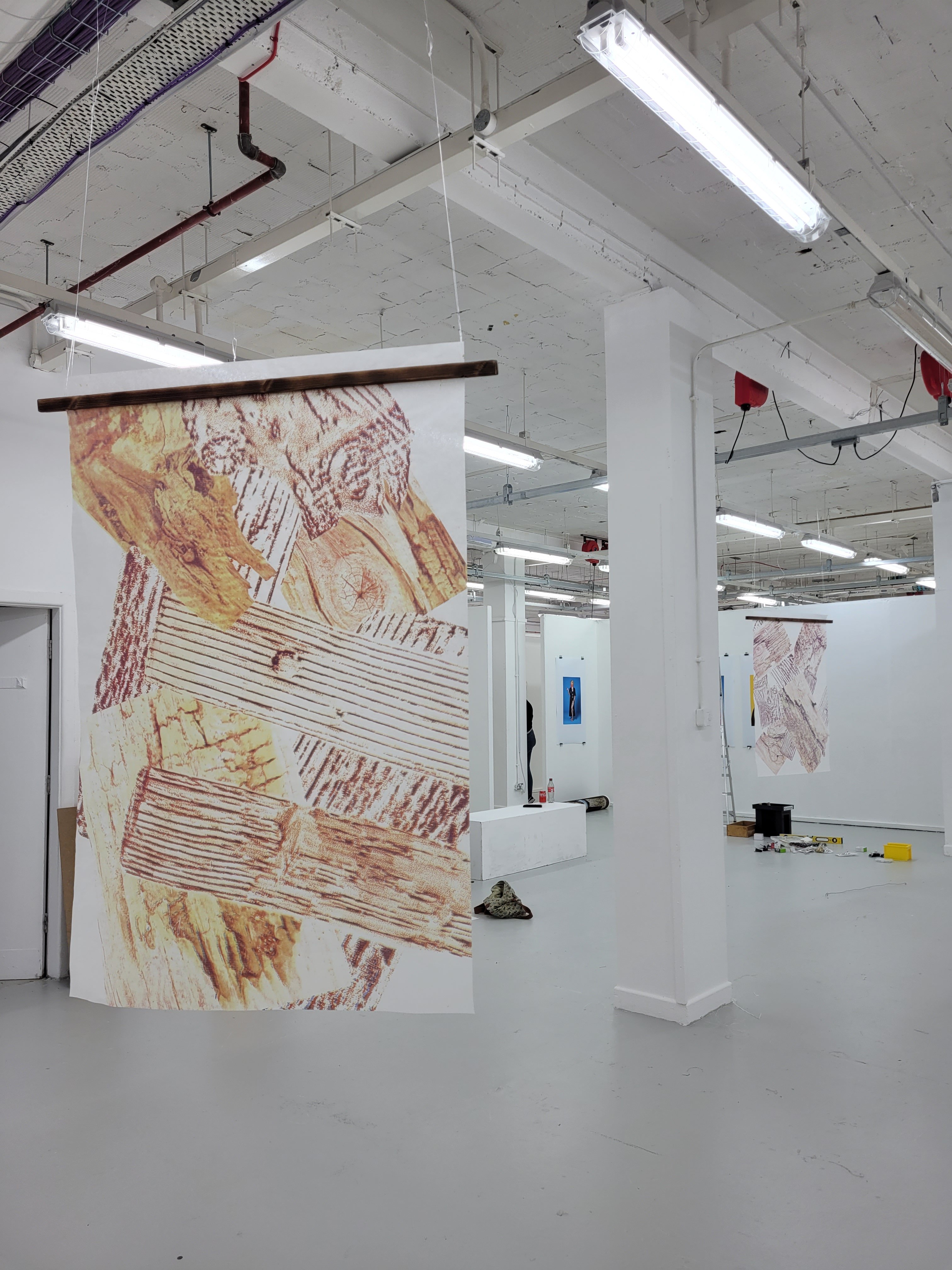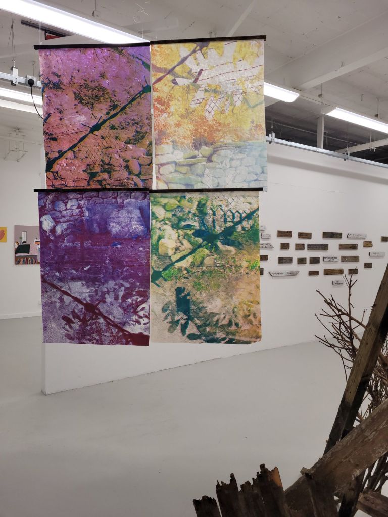 I have been making images for printing using photos I’ve taken whilst out walking. These are of barriers, I have then manipulated them in procreate to form new images. These have then been screen printed onto kozo 25gm paper.