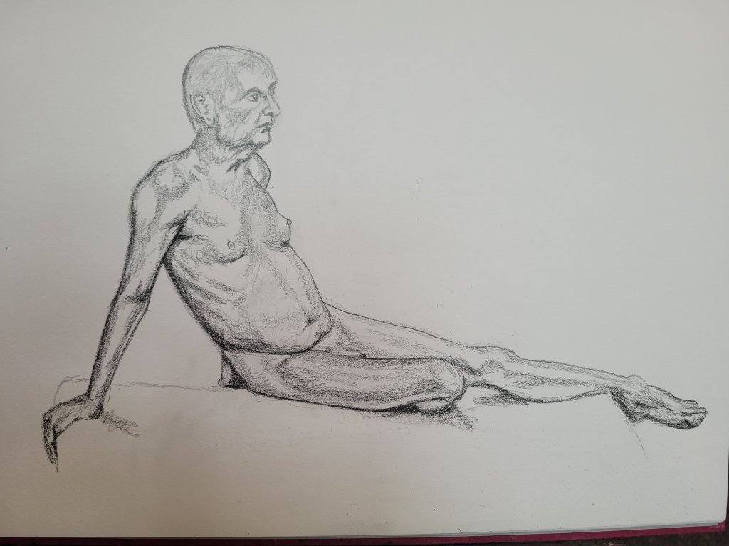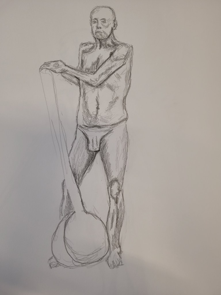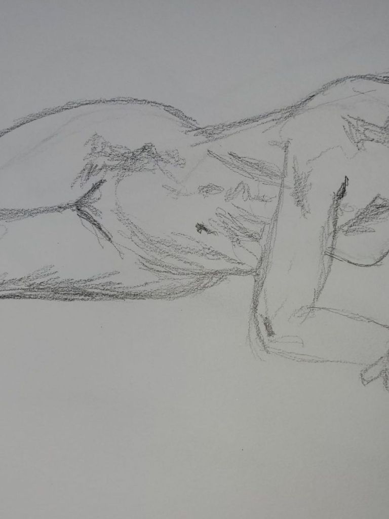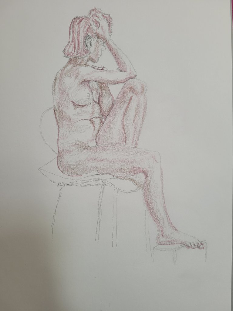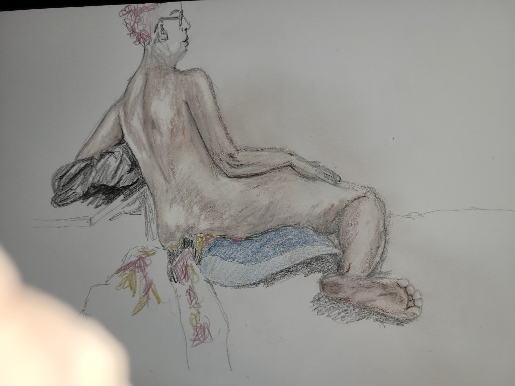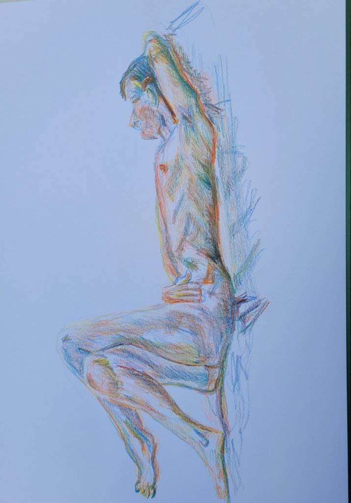Experiment with a multi colour pencil, she had a long body but I think I made it a bit too long5×2 minutes 2×5 minutes 20 minutes 20 minutes 40 minutes We had a visit from David an experienced model who we had not had before. I enjoyed drawing today the question is was I just in the right state of mind to draw or was he easy to draw? Either way im pleased with the end result.