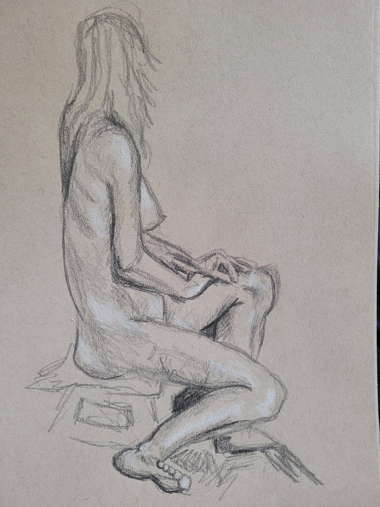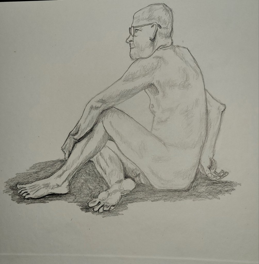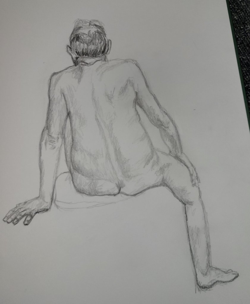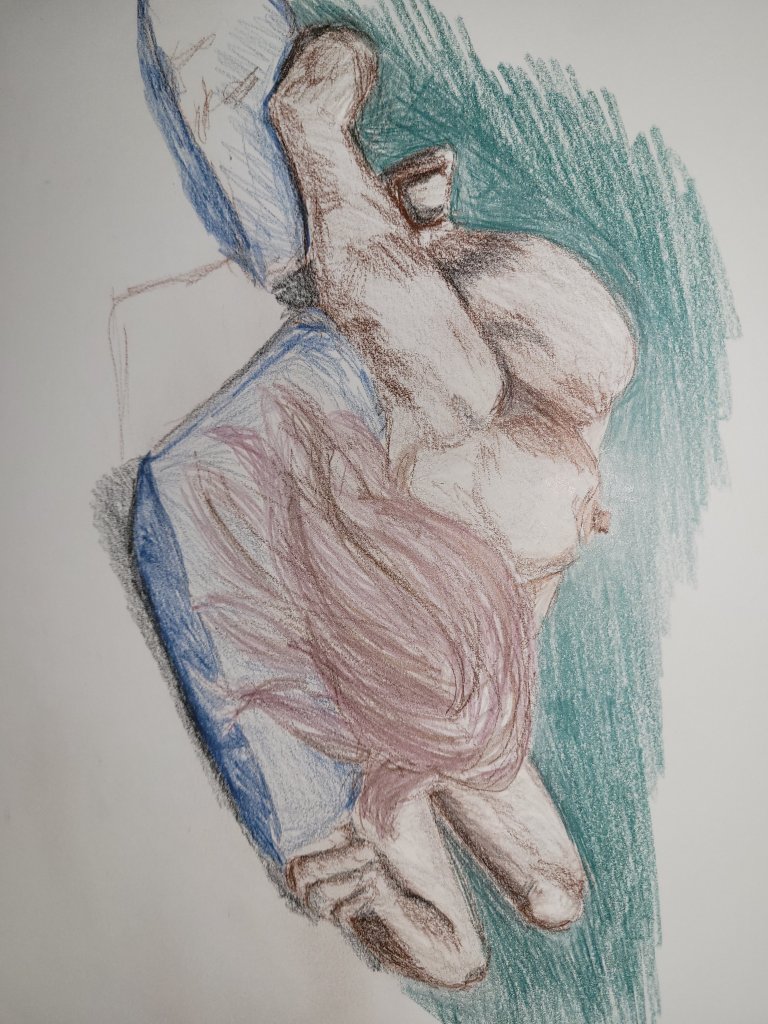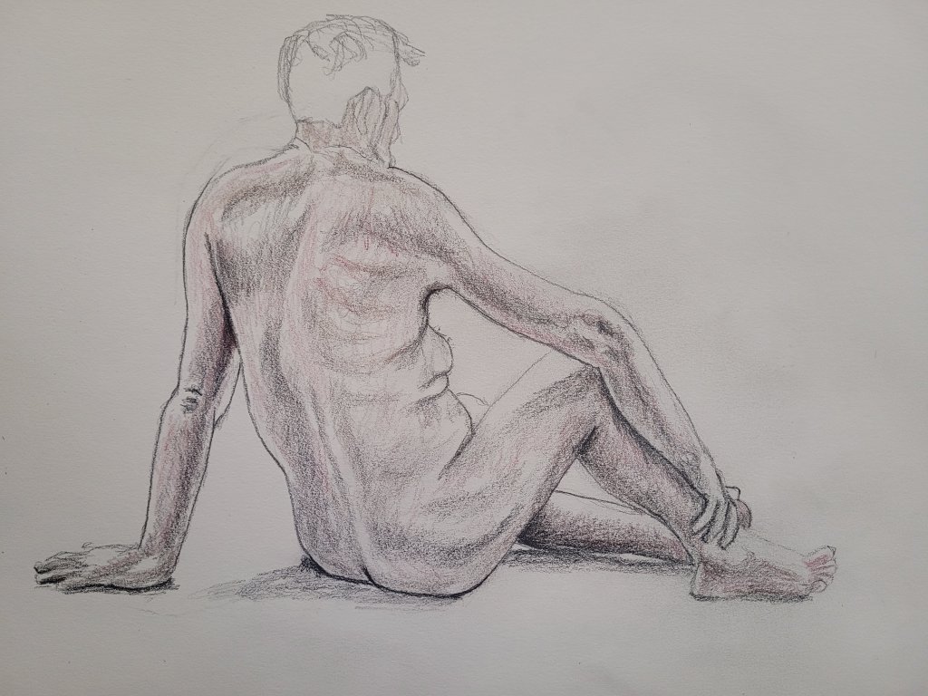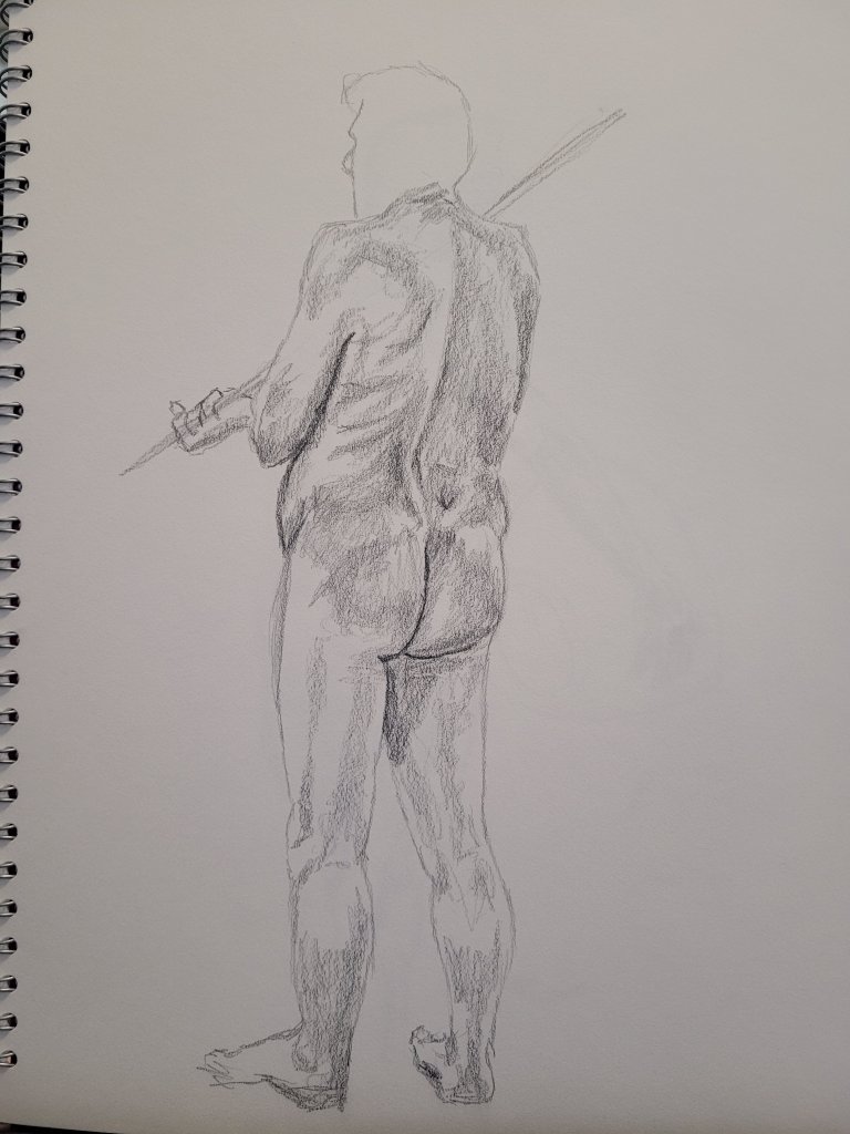 Experiment with a multi colour pencil, she had a long body but I think I made it a bit too long5×2 minutes 2×5 minutes 20 minutes 20 minutes 40 minutes We had a visit from David an experienced model who we had not had before. I enjoyed drawing today the question is was I just in the right state of mind to draw or was he easy to draw? Either way im pleased with the end result.