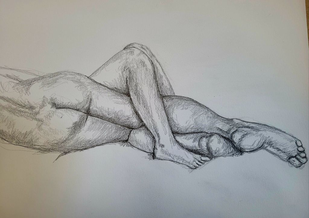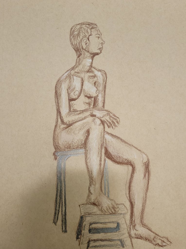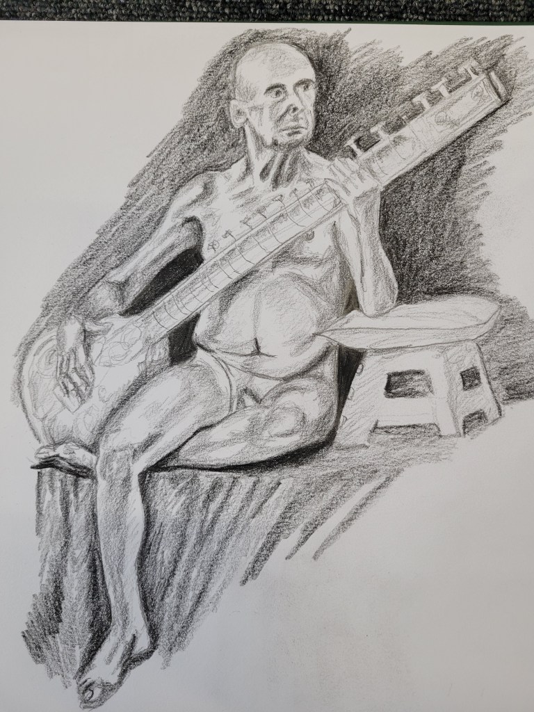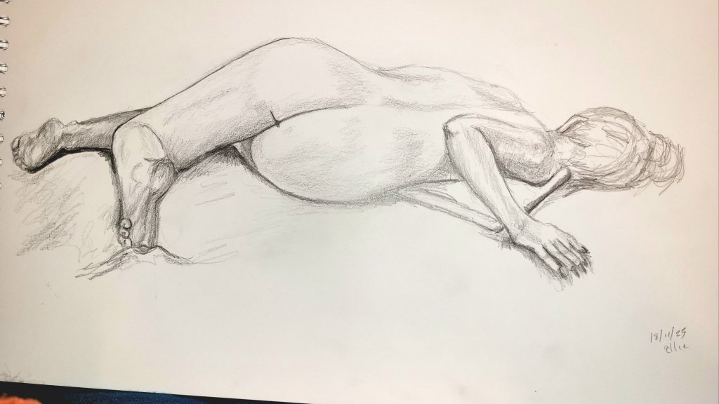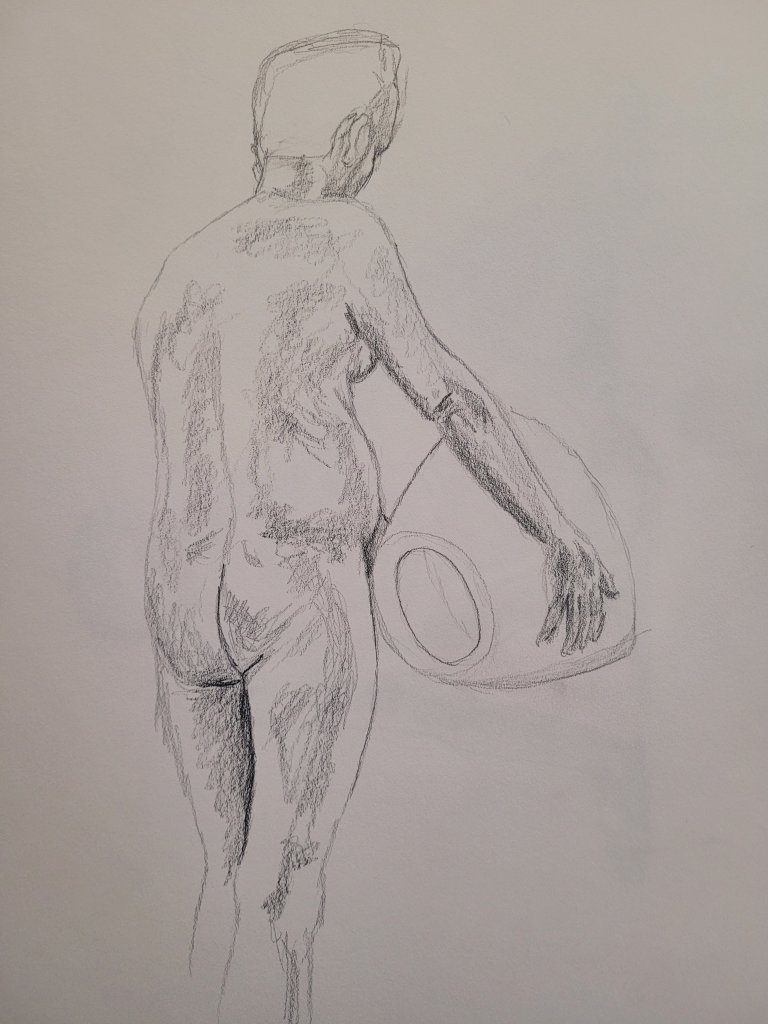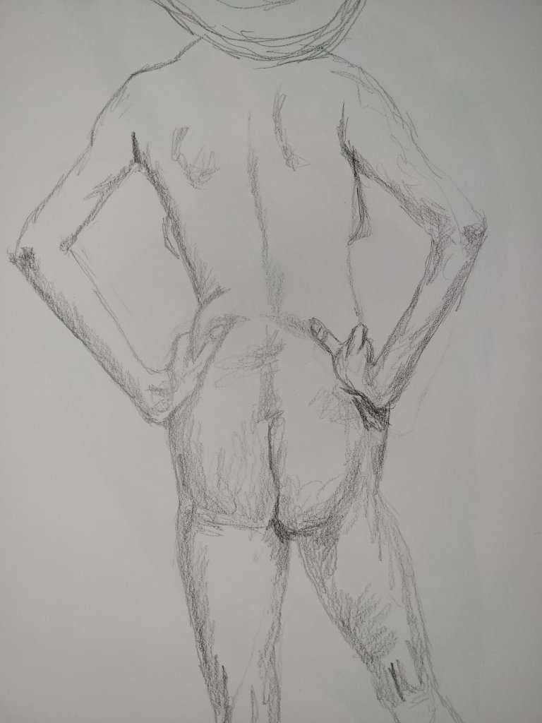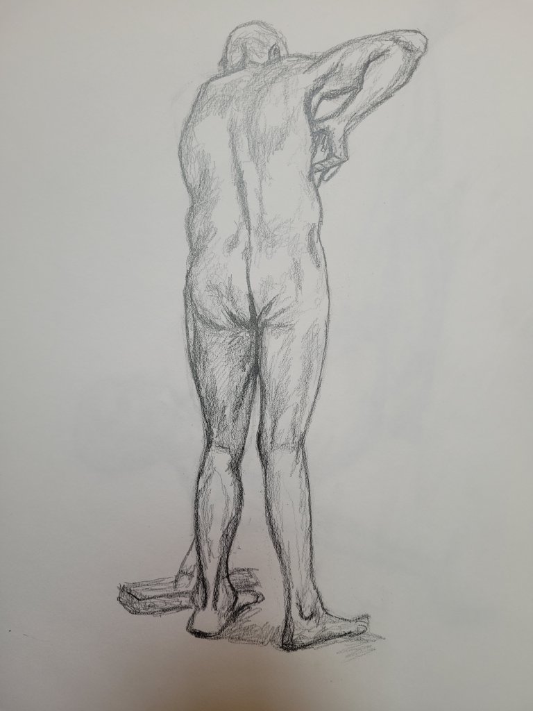 Experiment with a multi colour pencil, she had a long body but I think I made it a bit too long5×2 minutes 2×5 minutes 20 minutes 20 minutes 40 minutes We had a visit from David an experienced model who we had not had before. I enjoyed drawing today the question is was I just in the right state of mind to draw or was he easy to draw? Either way im pleased with the end result.