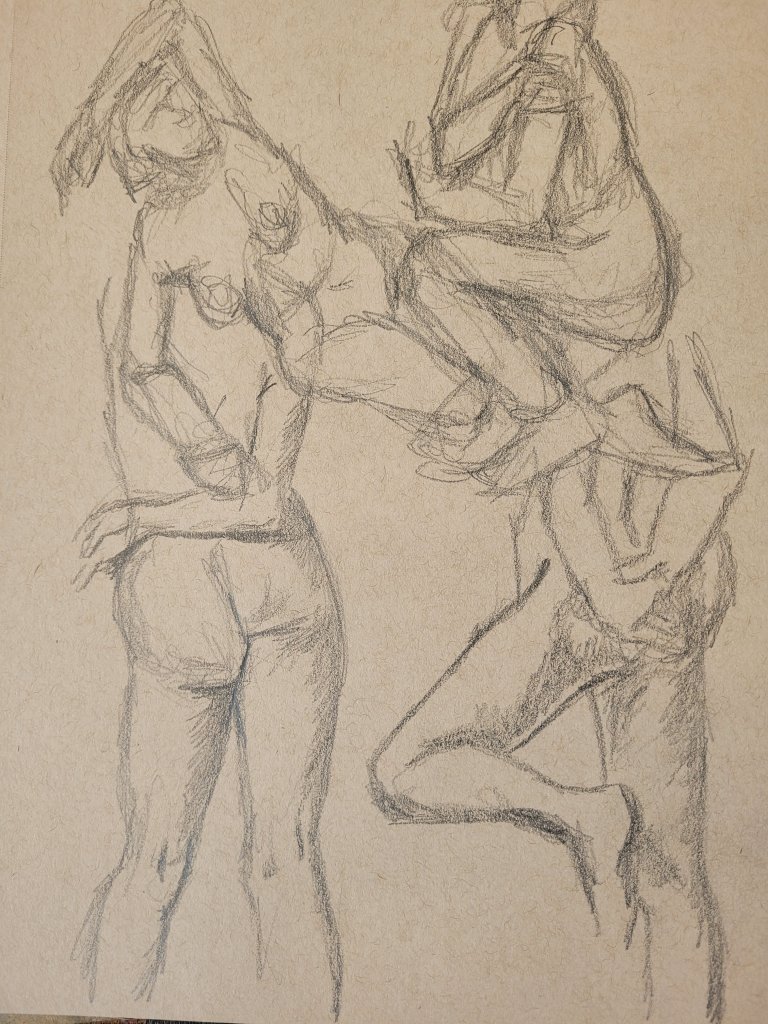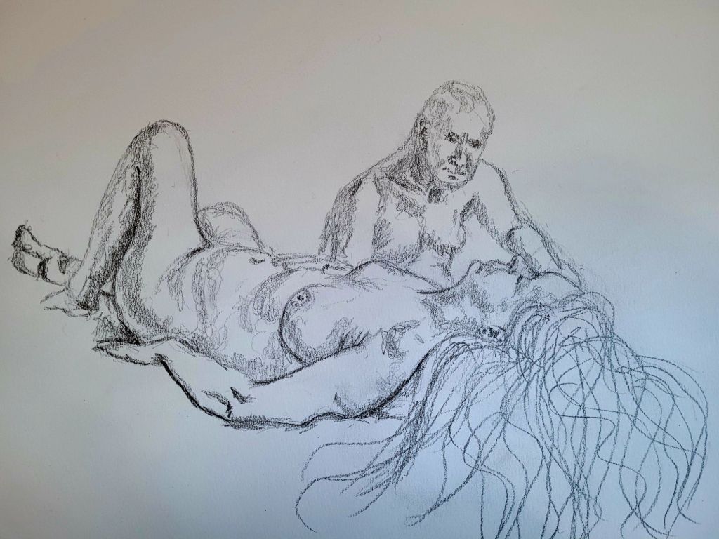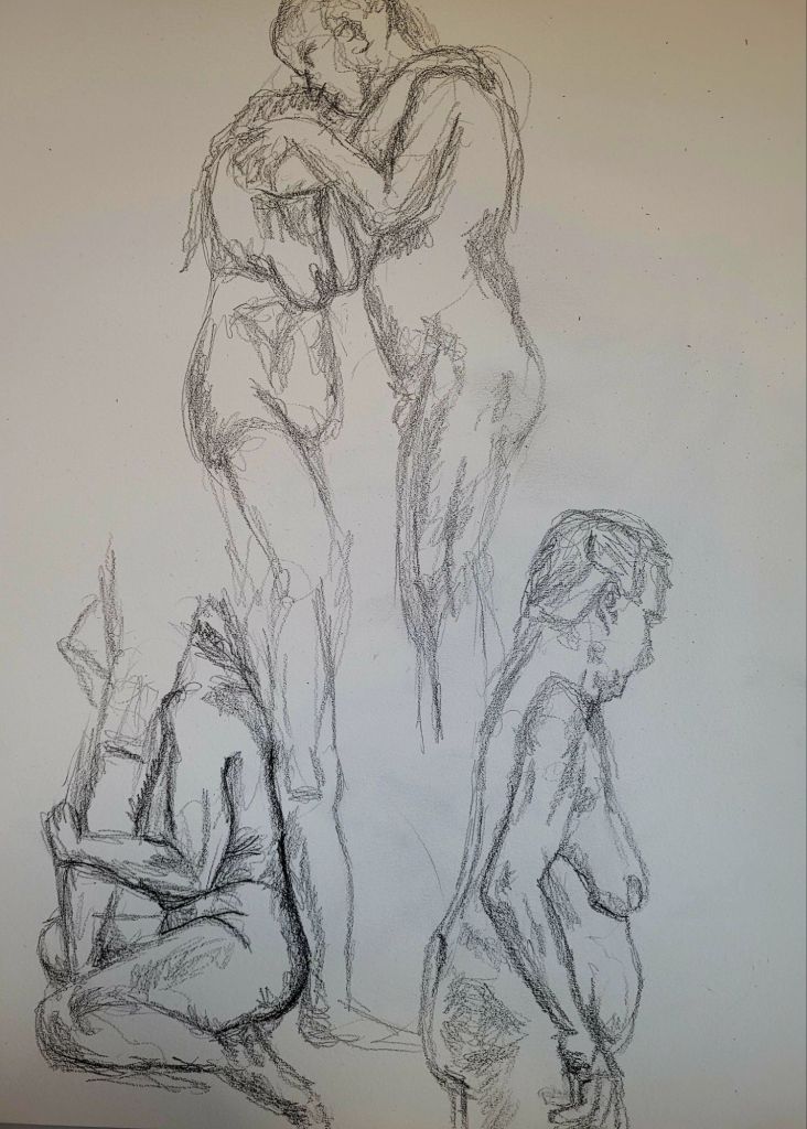 Today we had a longer session of life drawing, 3 hours instead of 2 and to make things more exciting we had a husband and wife modelling for us. I really enjoyed drawing and I think had a good session.
