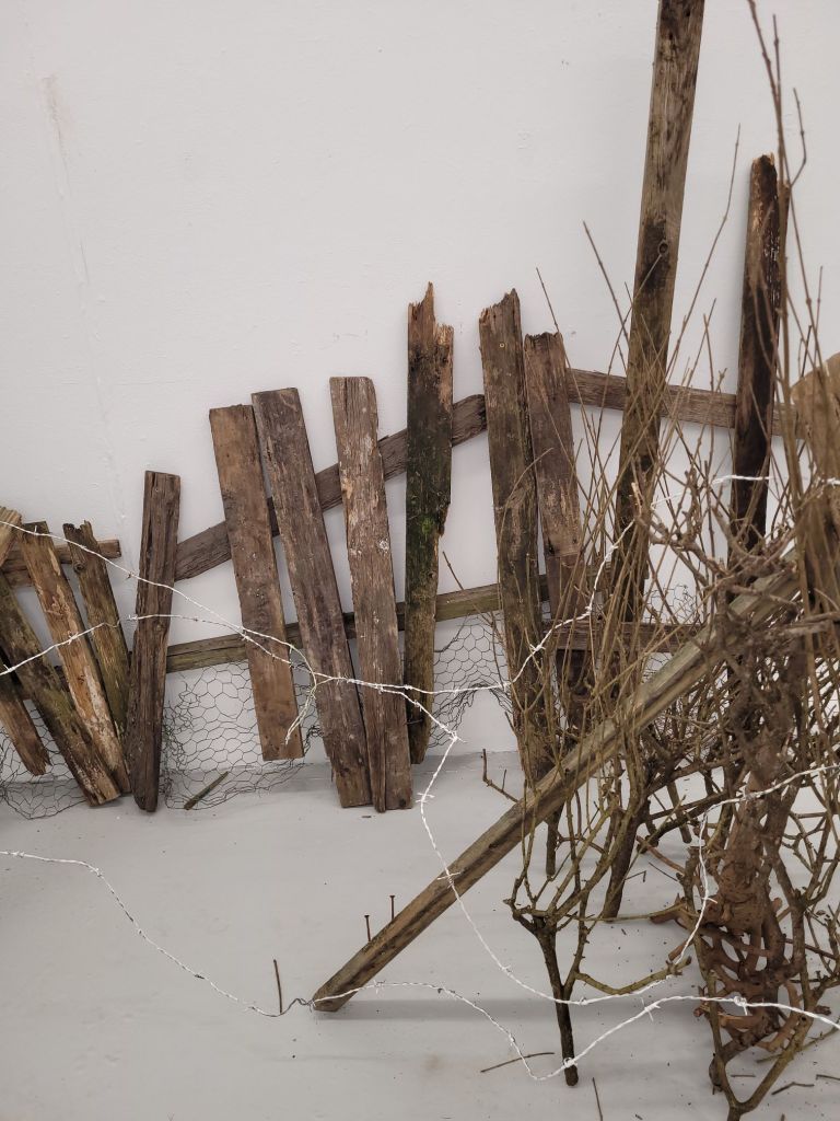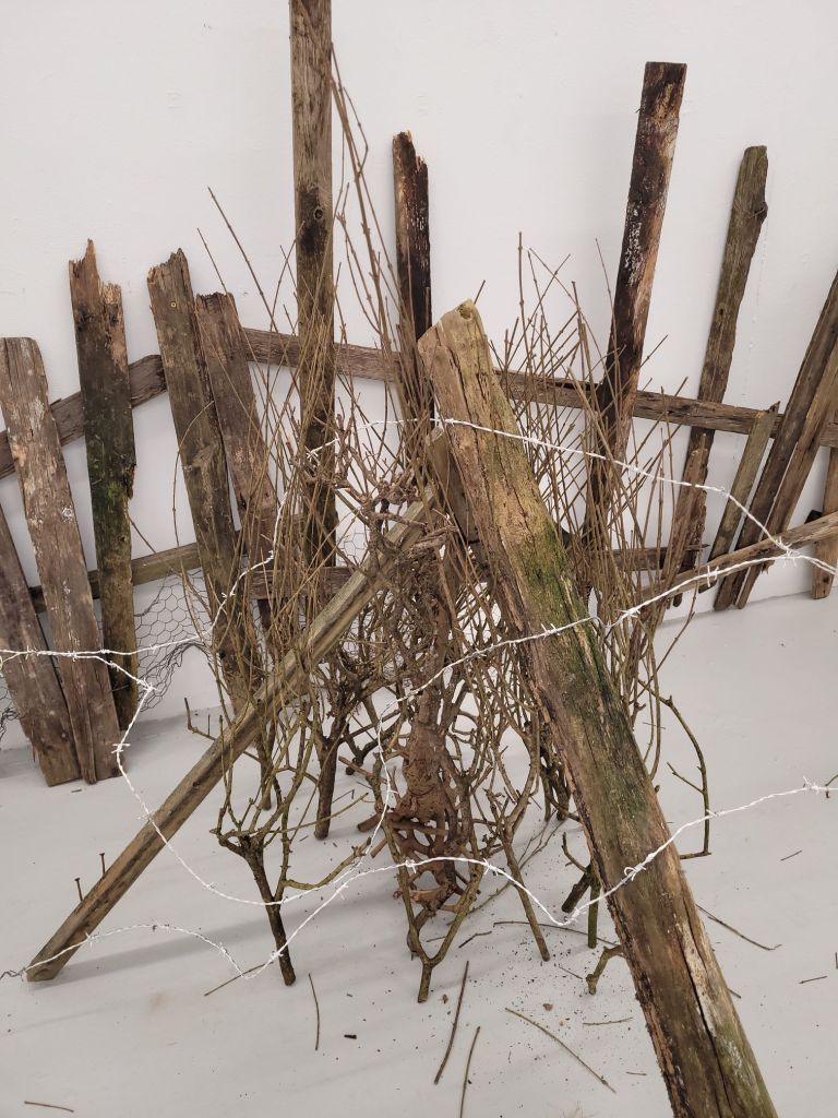 Along with the prints, I have rescued old wood and will use it to create a barrier. I’ve started building, but it will change as it grows. Watch this space!