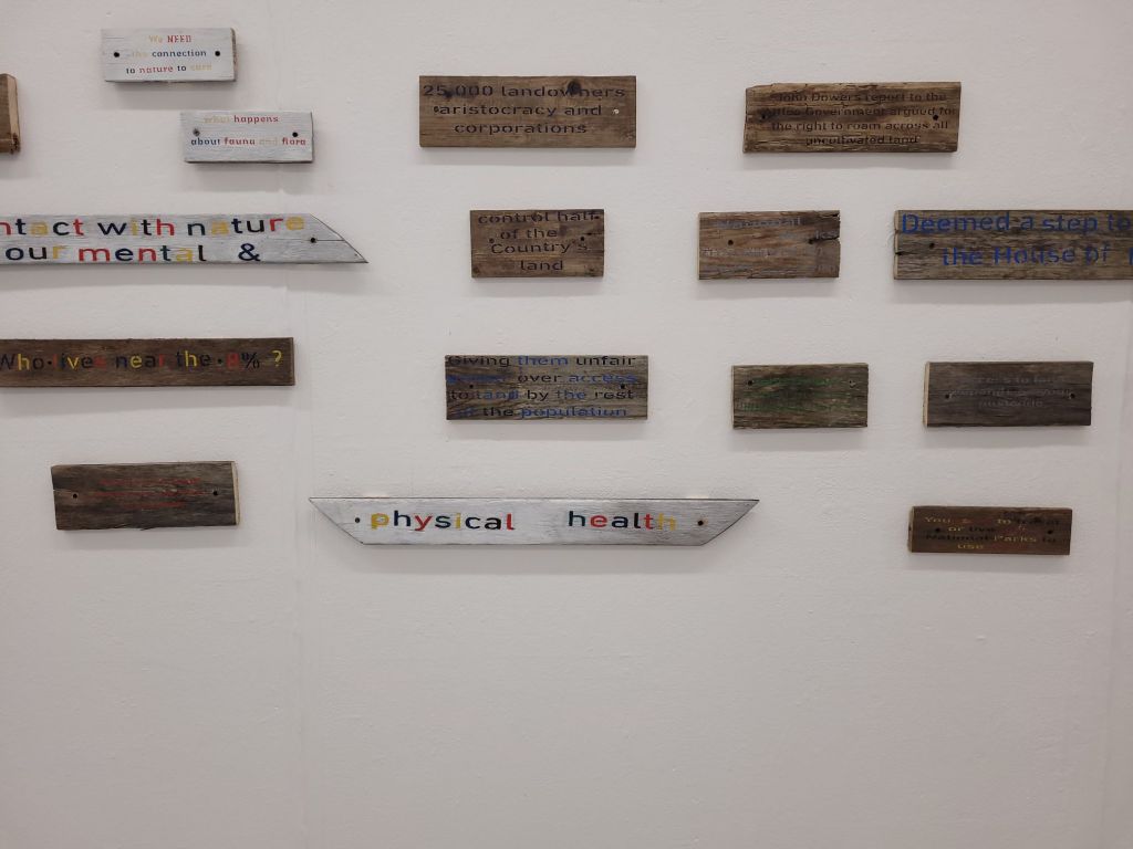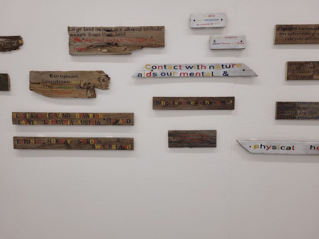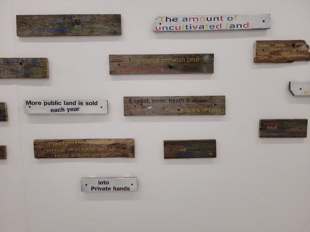 My work is all about the right to roam and our loss of access to the countryside. Each year, more common land is lost, public land is sold, and fields are lost to housing. Footpaths have been lost because the councils who have responsibility for caring for them don’t have sufficient funds. The CROW act left lslands of countryside that we , the public have a right to access but can’t get to unless we trespass. This has to change. As climate changes progress, our need to access the countryside and care for it will become more important than ever.We need that access to commence now.