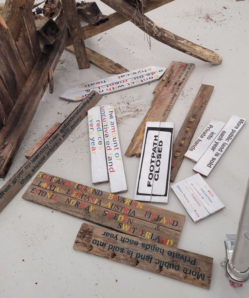I have also been making signs. These contain information about our right to roam and will be attached to my fence/barrier.