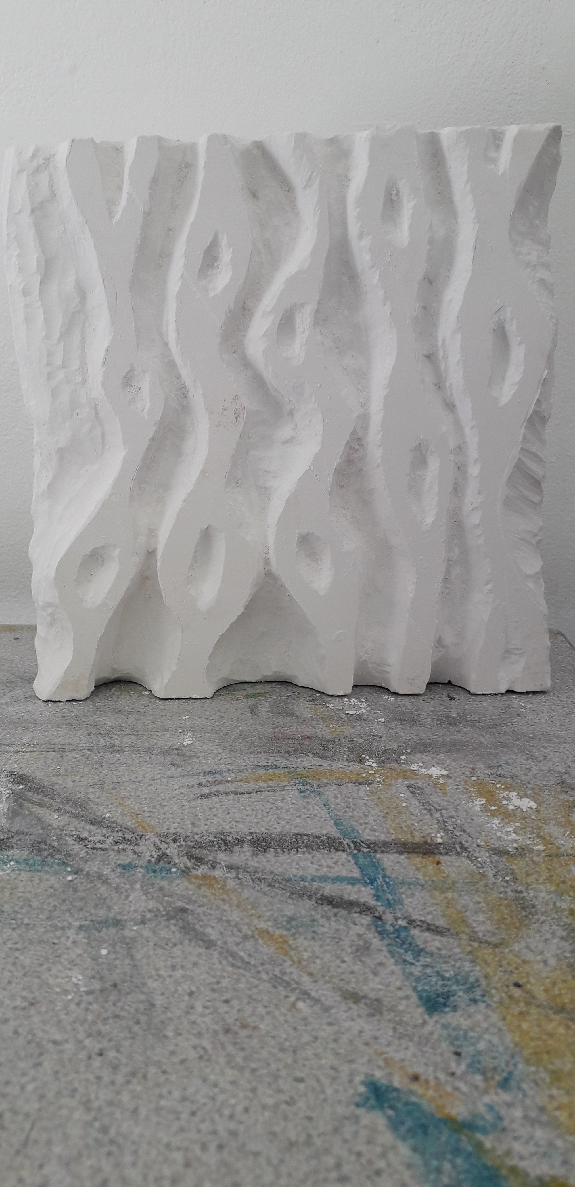 Tutorial with Fay interesting probably because I had nothing physical to show her just my photos and ideas. So we were talking about intention and the different ways to interpret my art and the possible differences between what I want to say and how my audience will read the work. How can I focus their vision so they get mine? I did some more carving then left for a late lunch and my repeat eye test. My new glasses have the incorrect prescription in the right lens and the level of focus is above my pupil which also would not help. No wonder I’m struggling to see properly. I collected my new art book ‘What are you looking at?’ I tried to read some but will have to wait for the glasses.