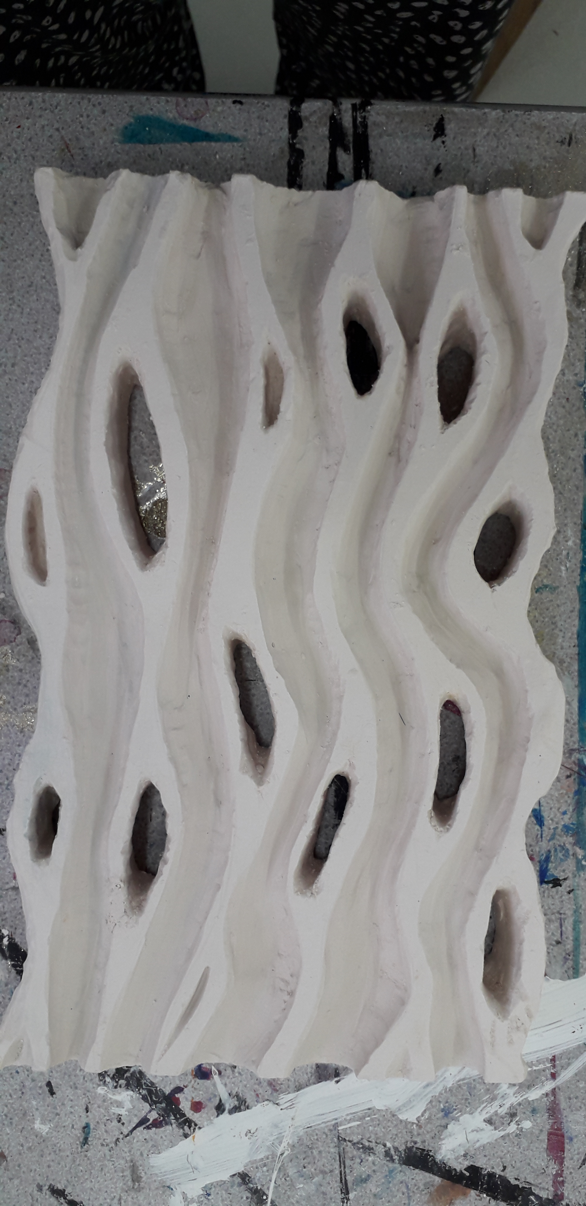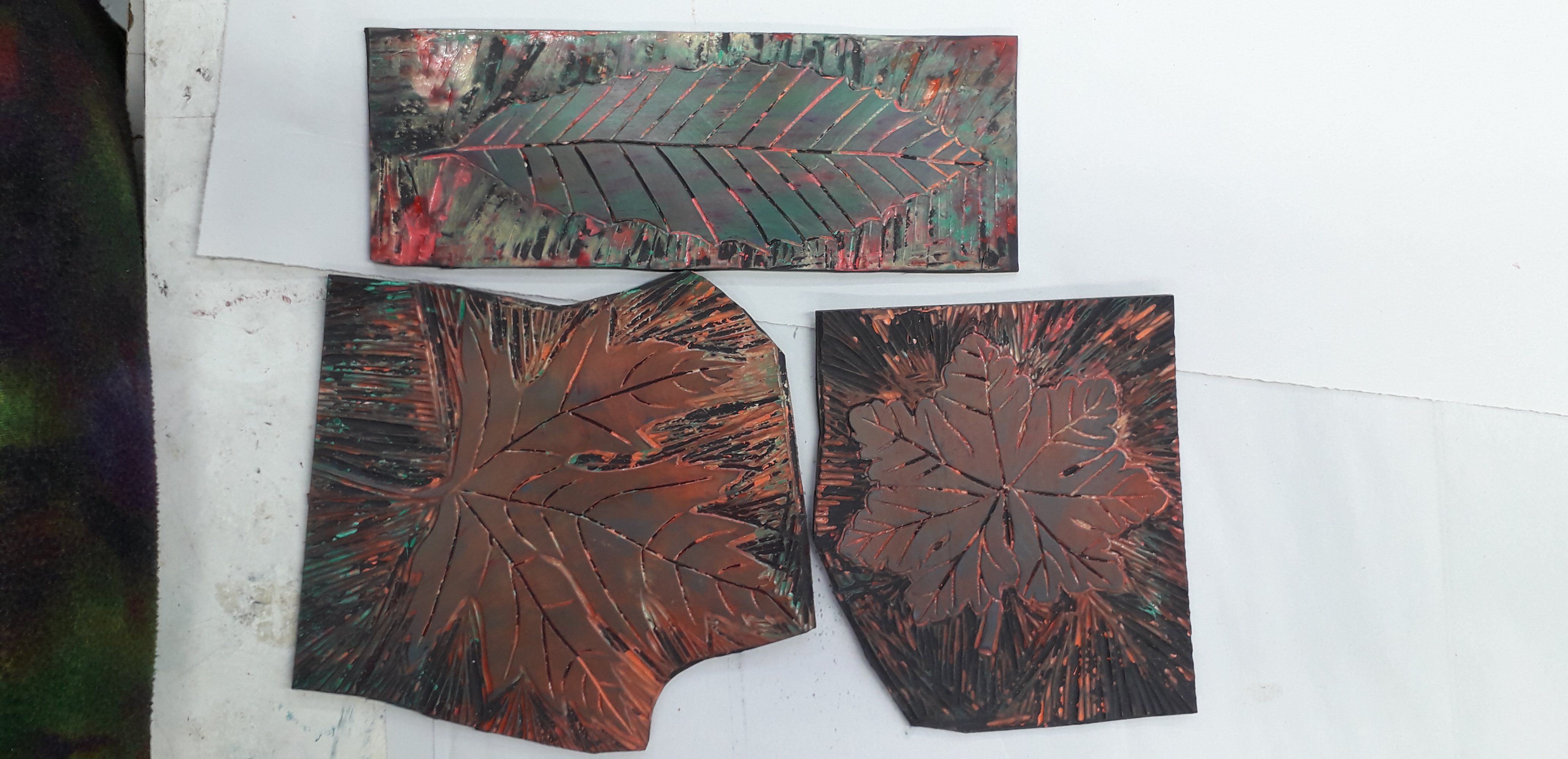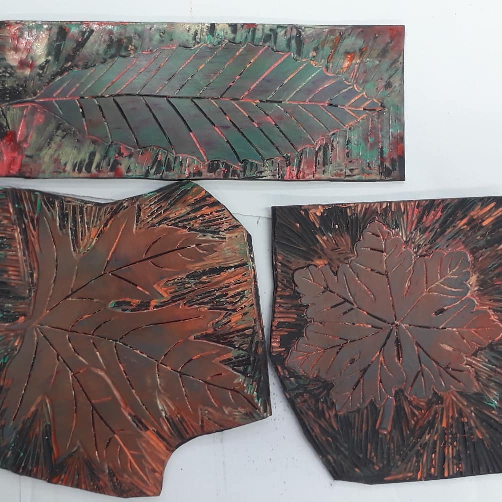 Thursday collected some clay from the workshop I decided to do some practice bowls clay is quite dry and firm making it difficult to manipulate easily. I tried making small slabs and pressing my lino cut into them they are interesting but I could do with putting them through the slab press. img_20200220_140235_9721762015013104373574.jpgI think it will work. I made a coiled pot the lino doesn’t press into that at all so I’ve just decorated it with my leaf patterns. It looks ok. I will let it dry and sand off the rough bits next week.20200220_1400338132062776111548968.jpg Have to leave early for another Drs appointment. My BP is still high apparently they don’t do the 24 hour reading any more I have to call into reception whenever I get the chance and take it with the machine. Does that reduce stress?? Bloods also taken.