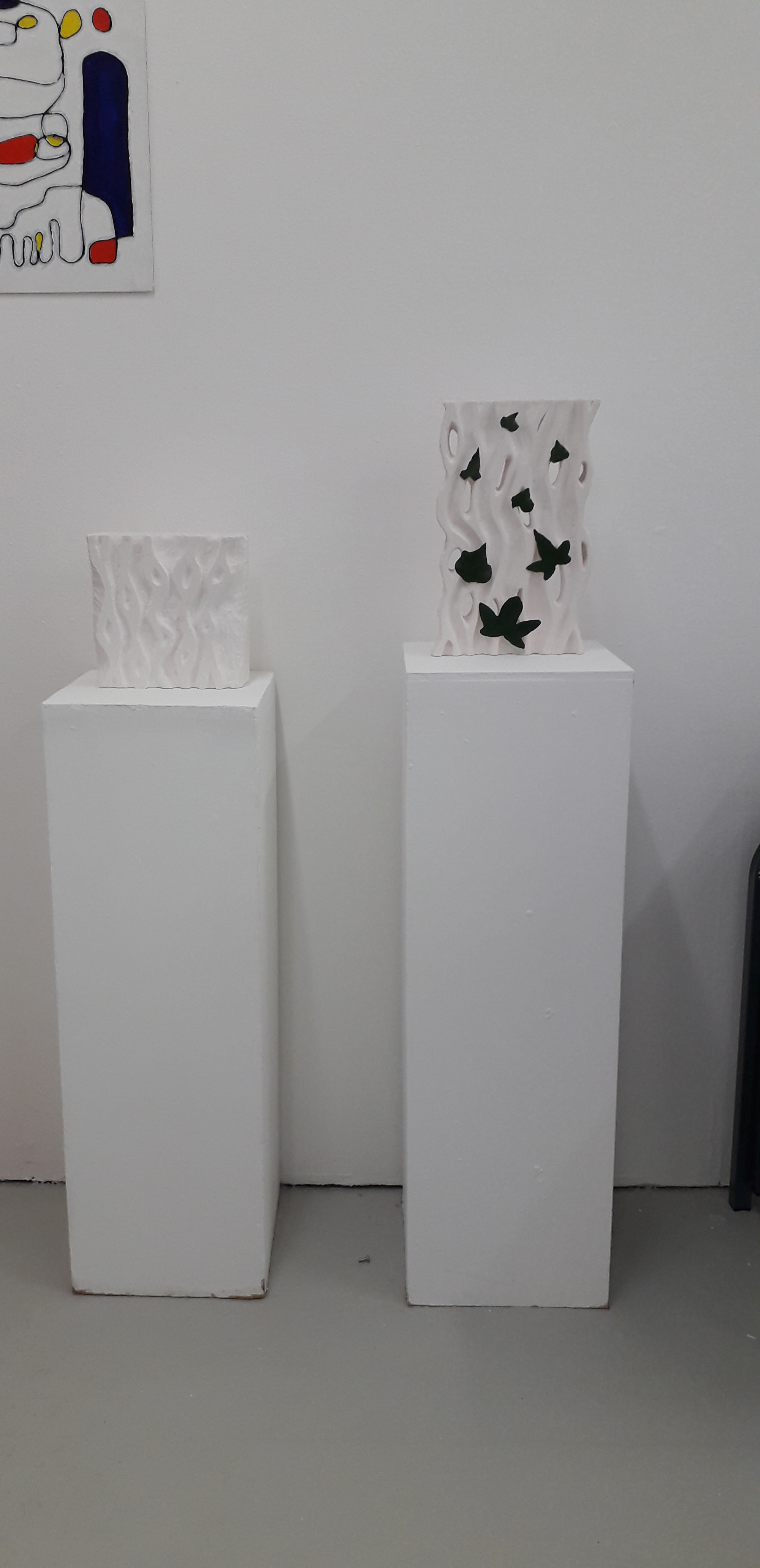 Back and front of what I think will be my final piece. I might add ivy leaves dipped in plaster and painted.