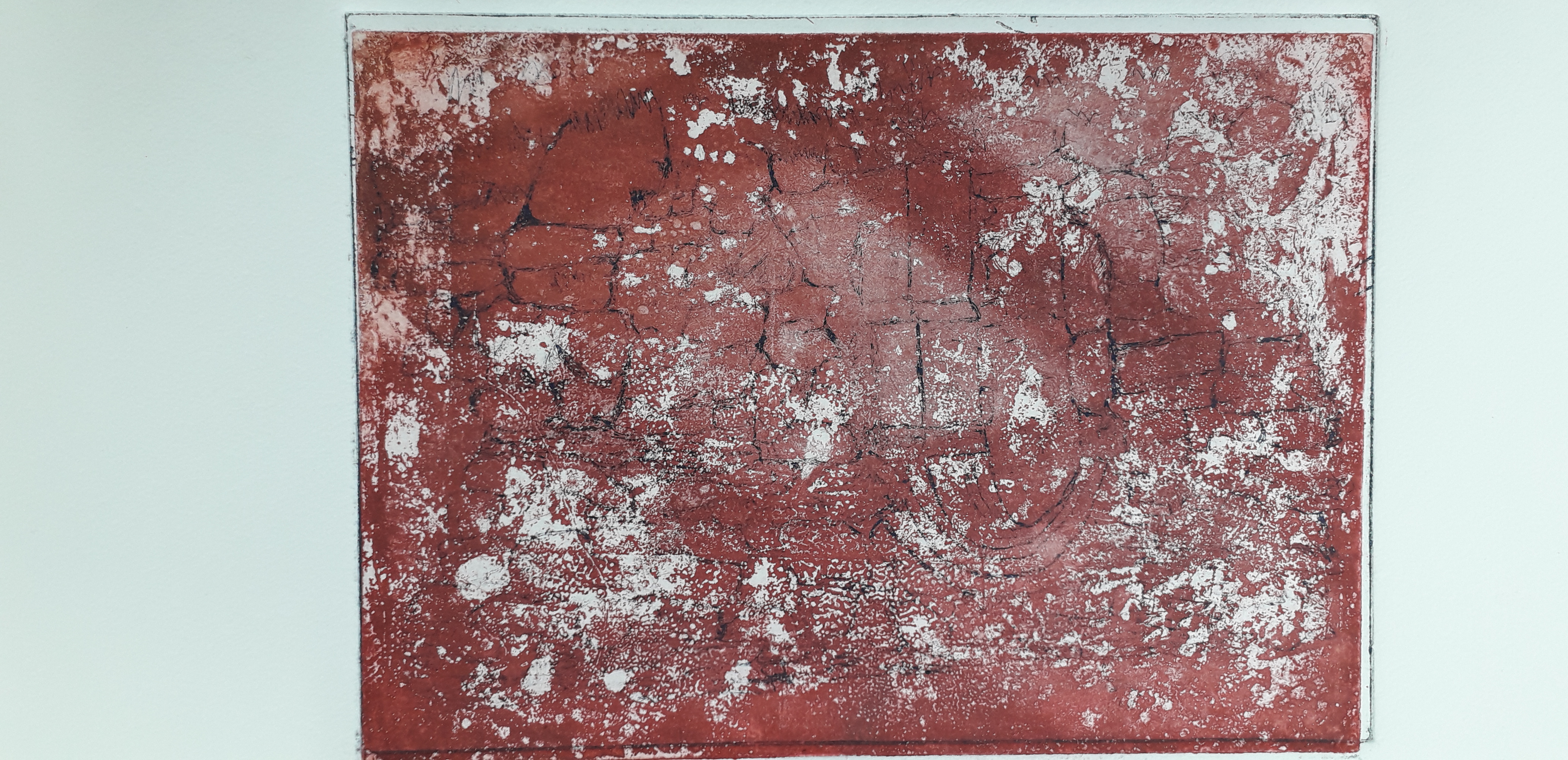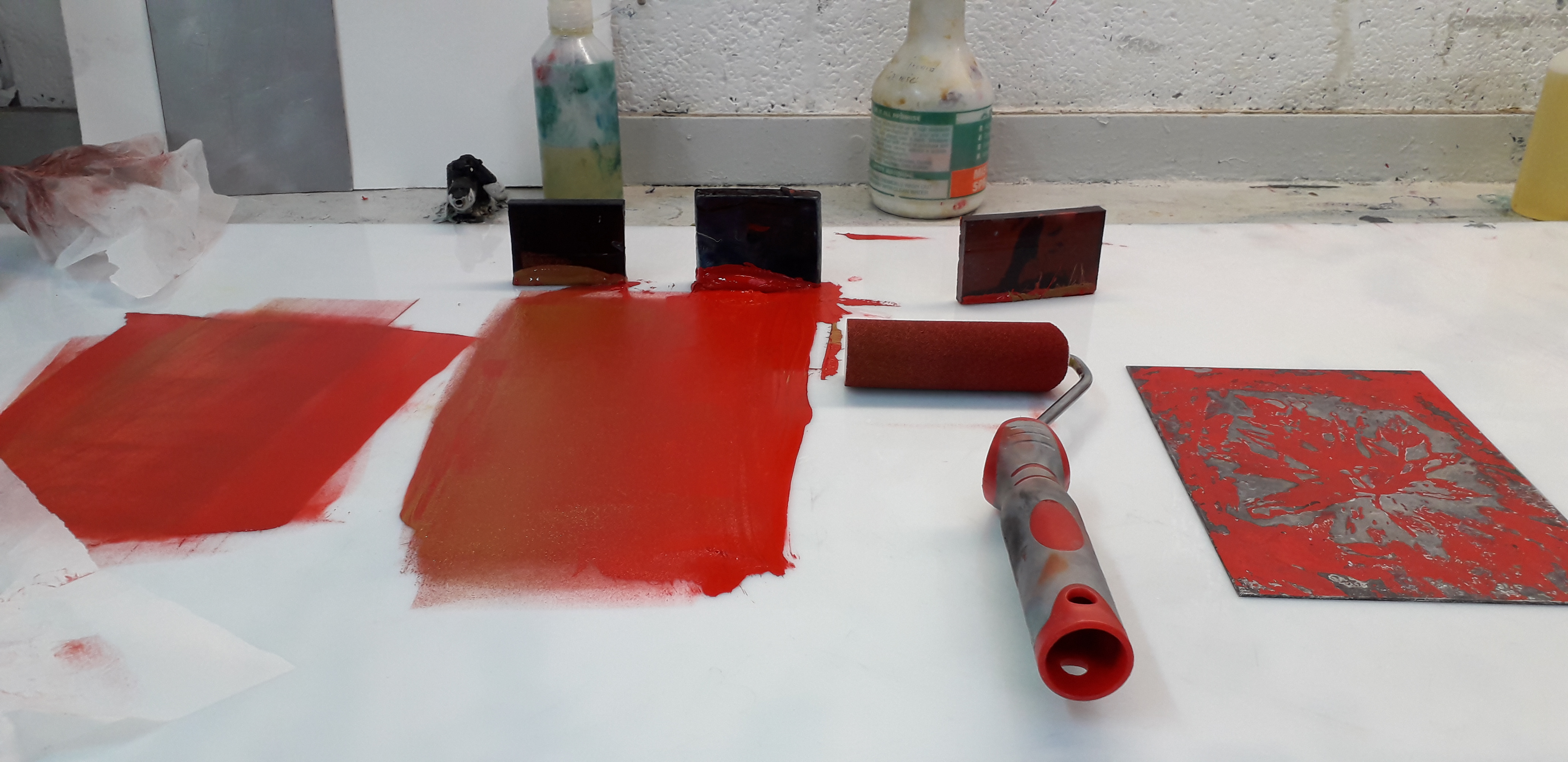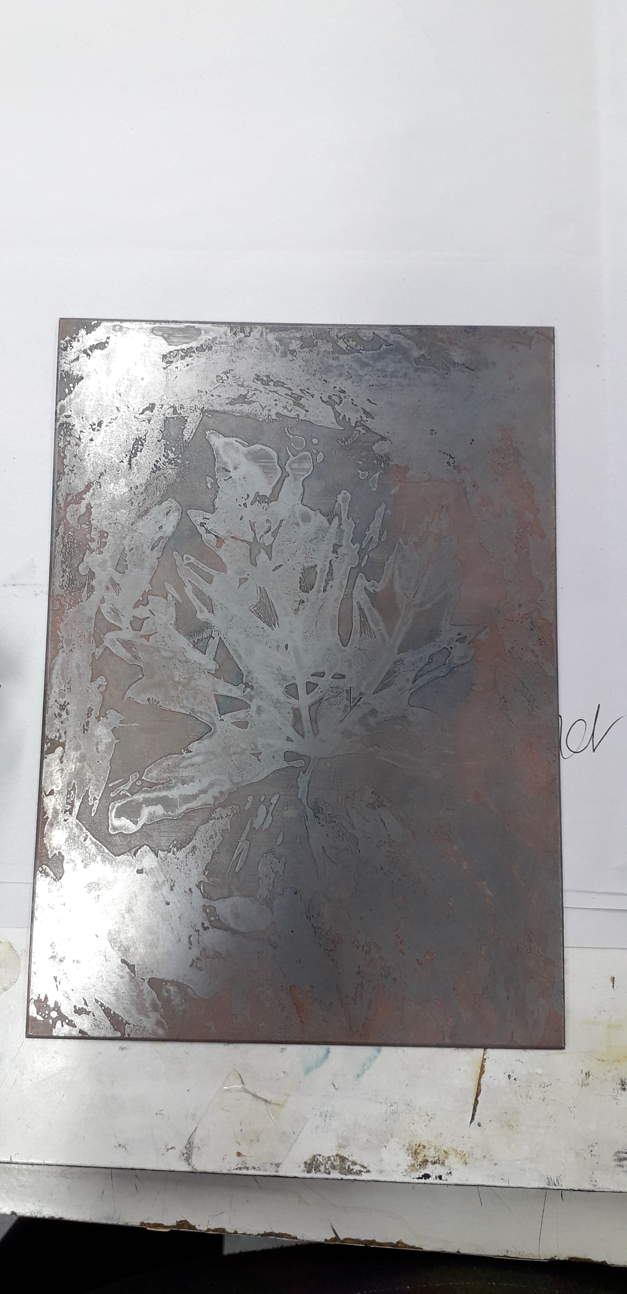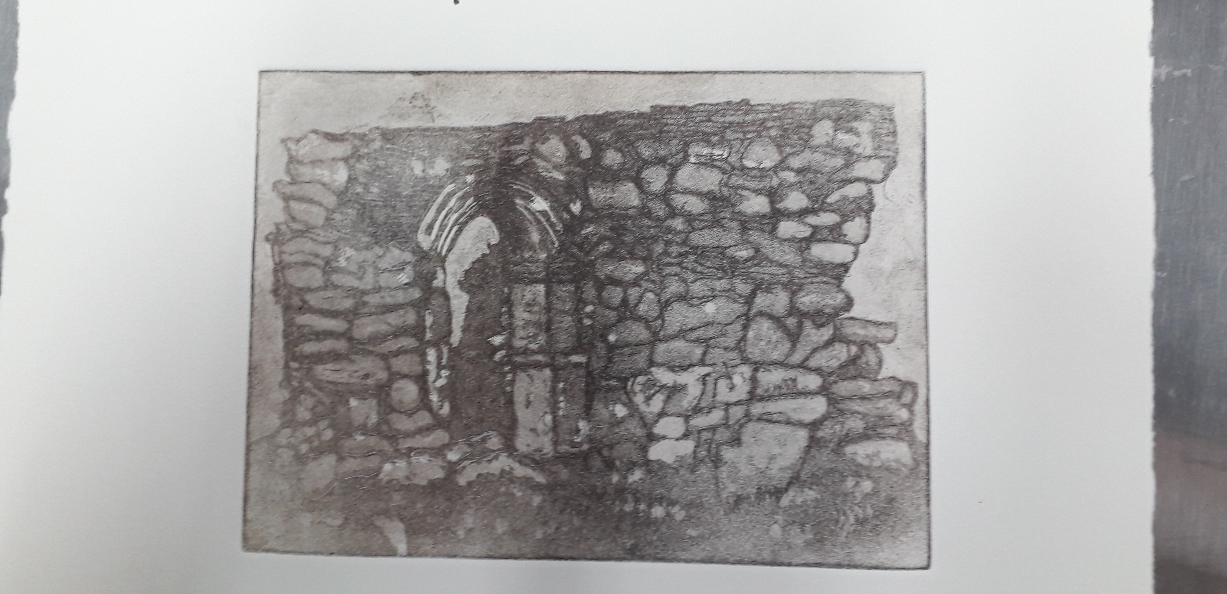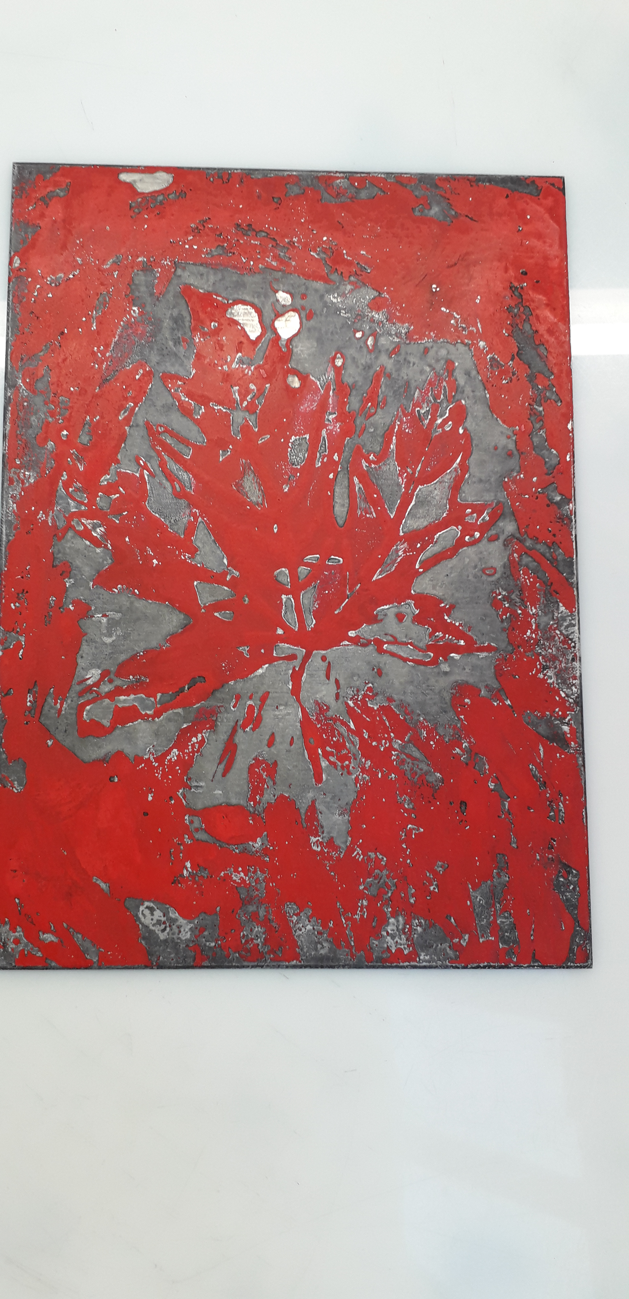 Good day started by removing the scratches with straw hat varnish. Then putting my first hard ground into the etching solution. Whilst that was etching I worked on one of my mono prints.