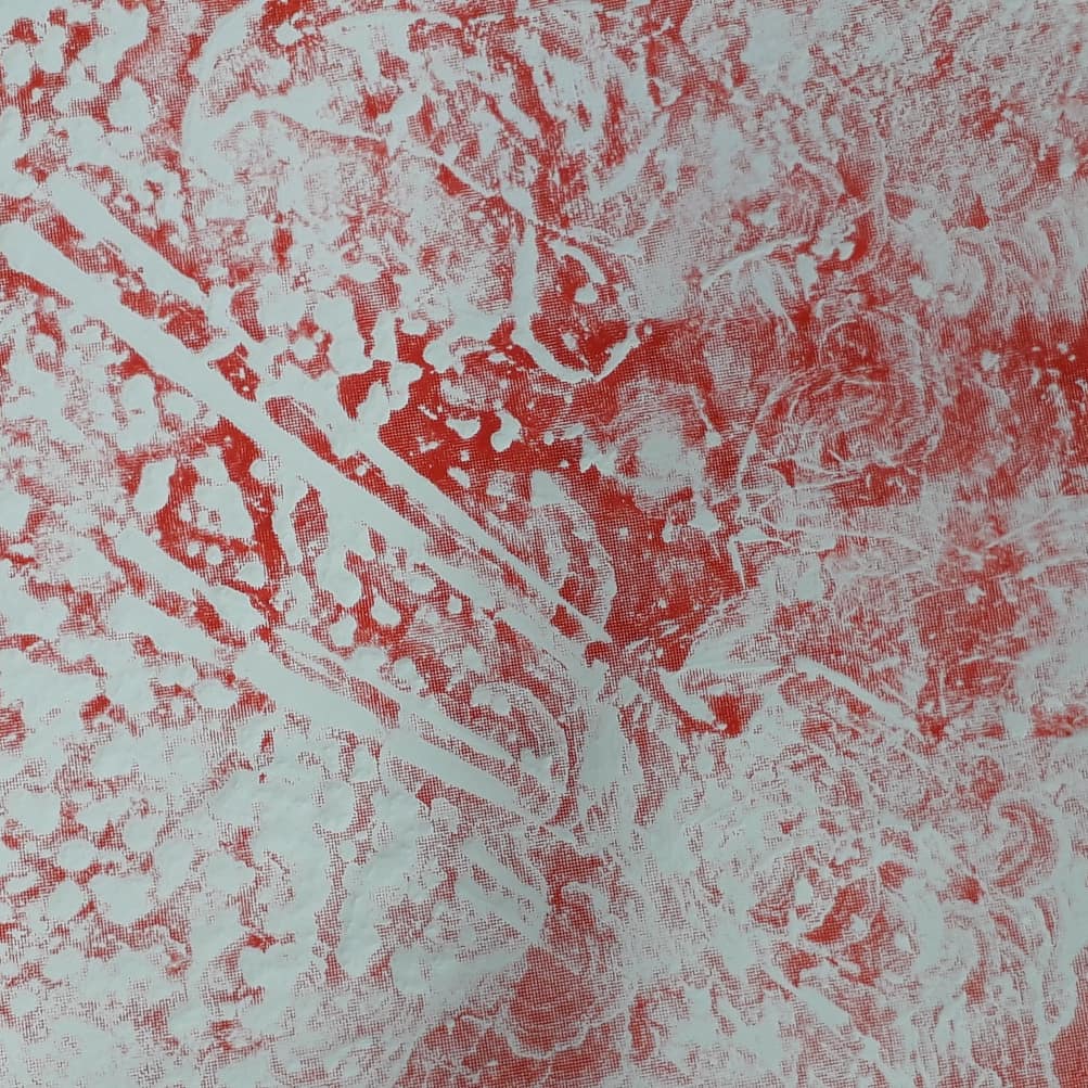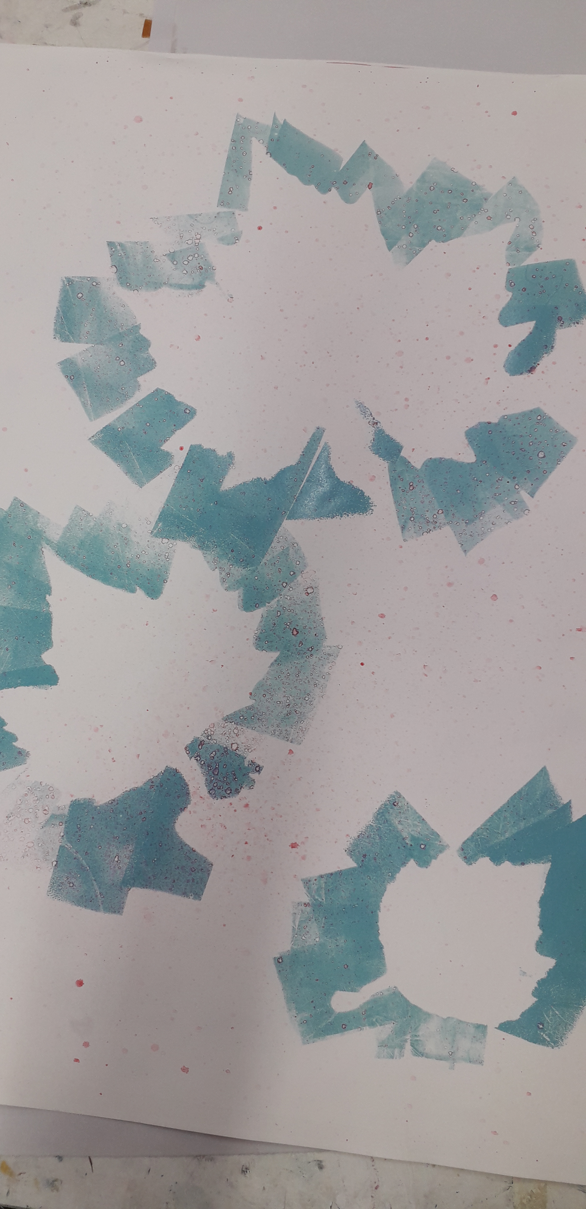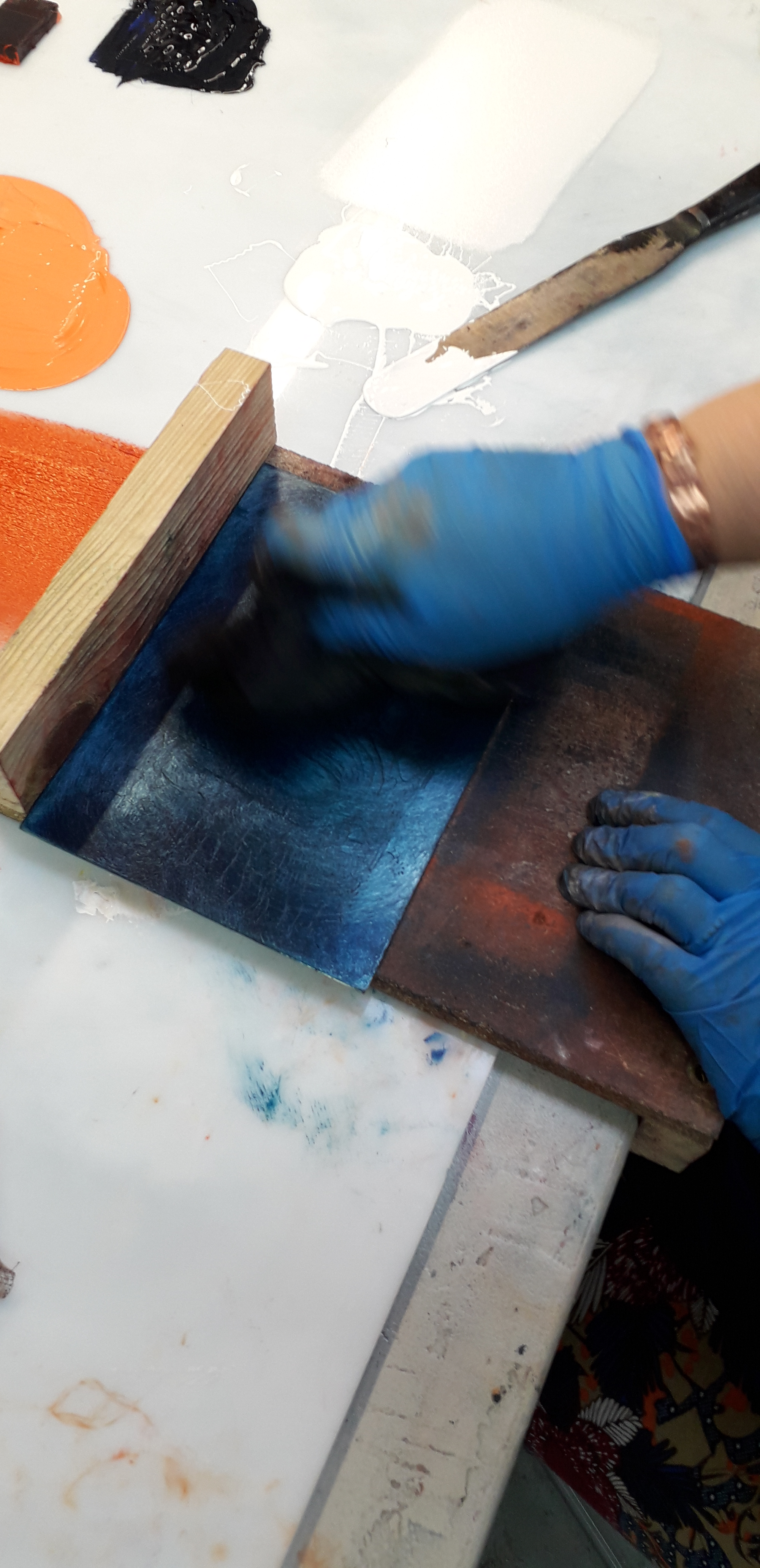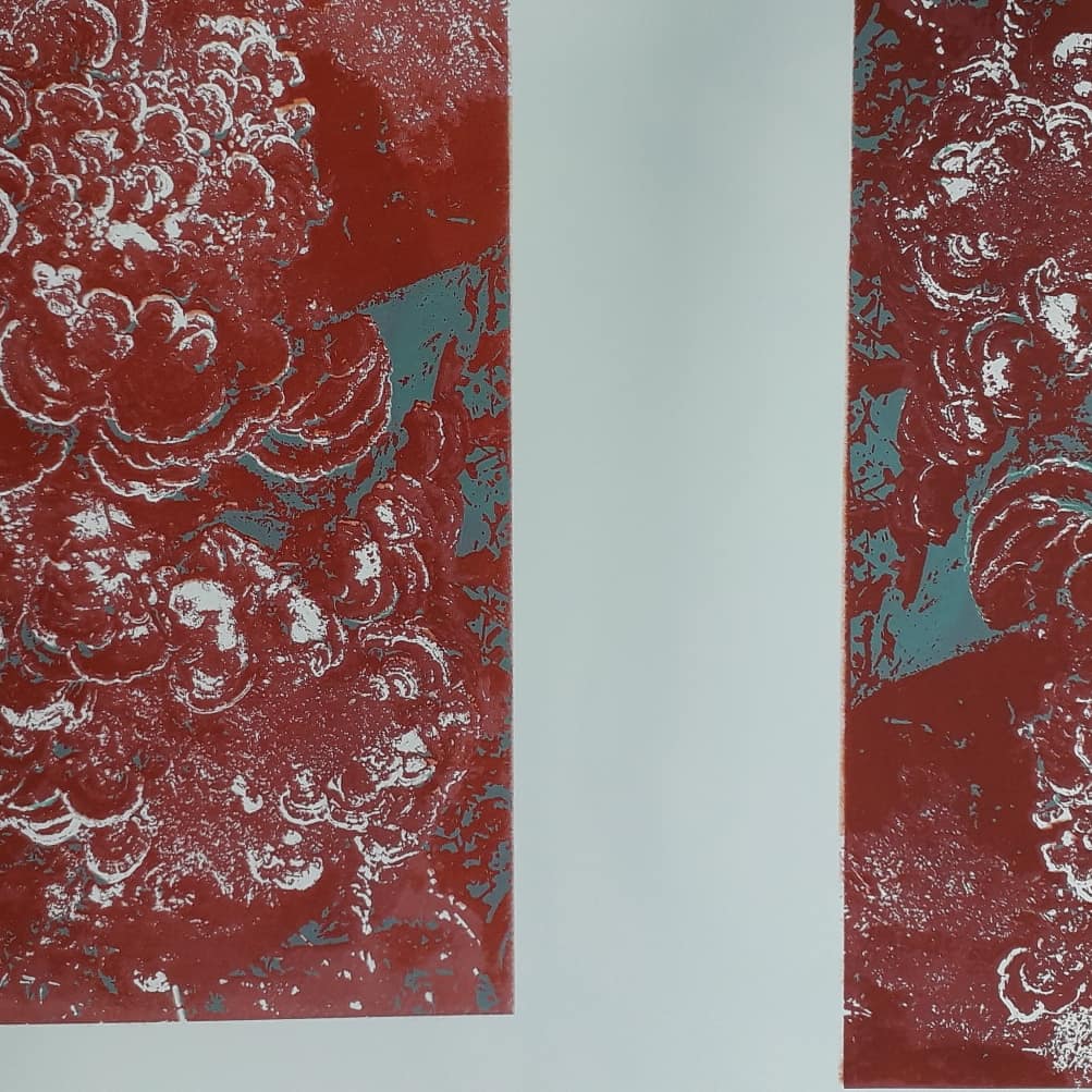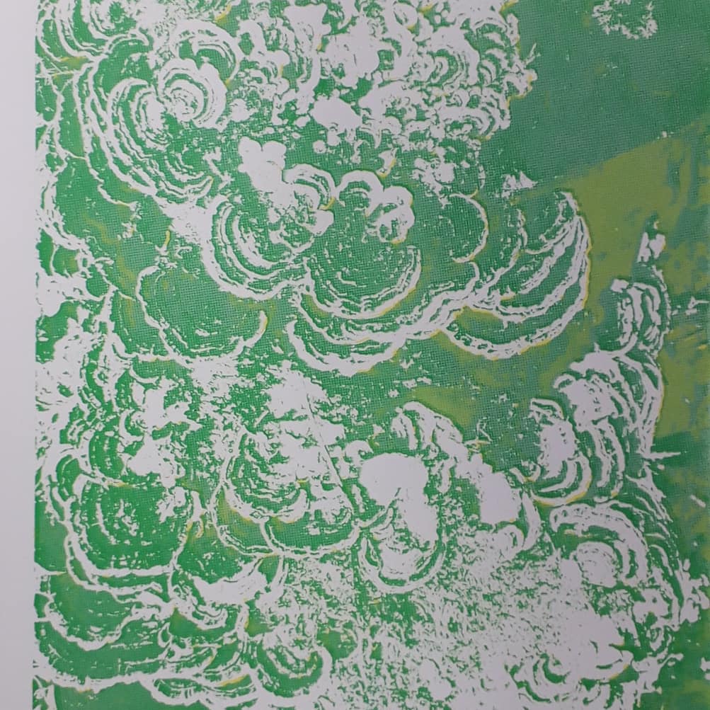 Good day started by removing the scratches with straw hat varnish. Then putting my first hard ground into the etching solution. Whilst that was etching I worked on one of my mono prints.
