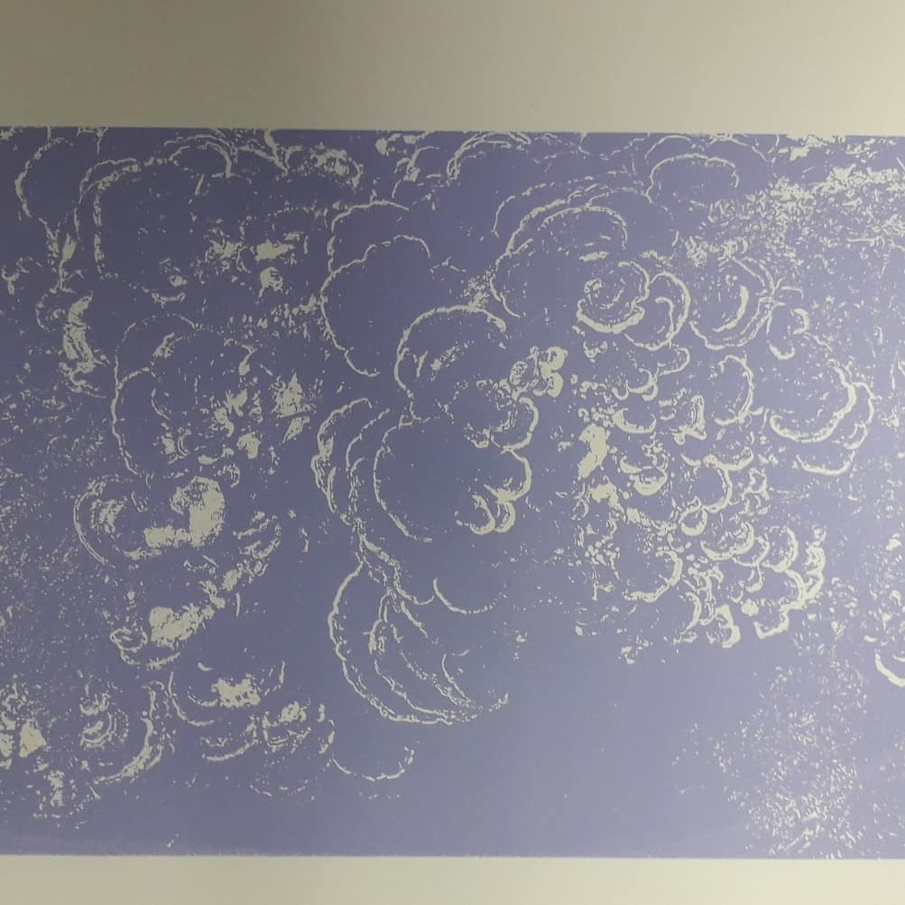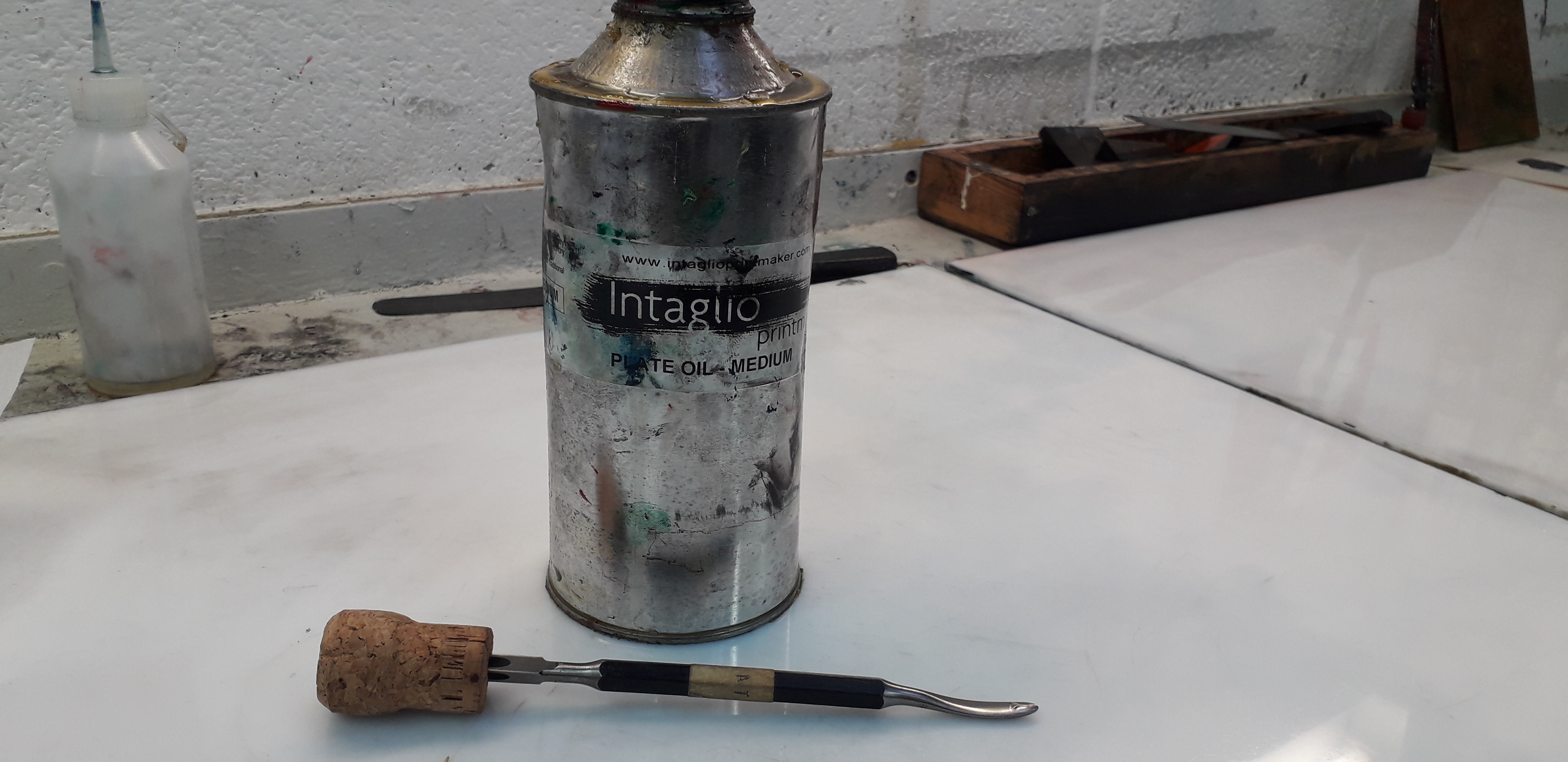 No ultramerine available in etching ink so magnesium carbonate added to make the ink flow better into the etched groves