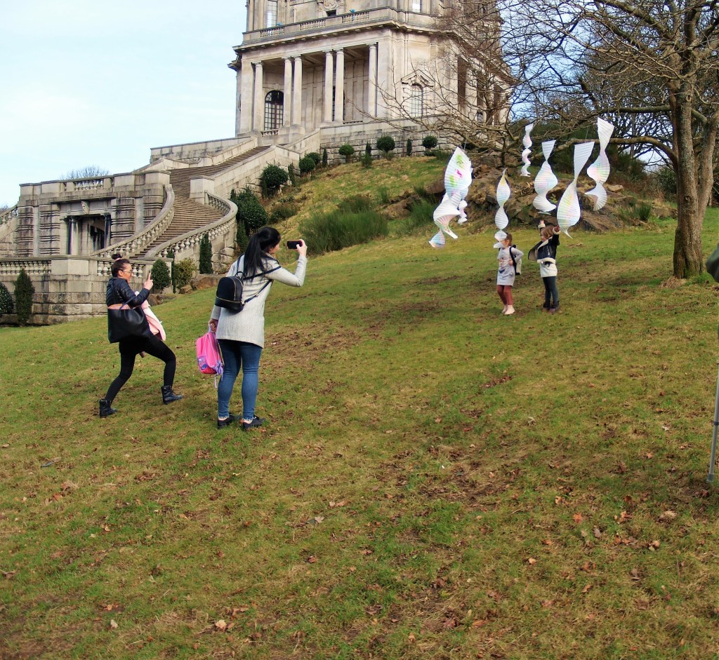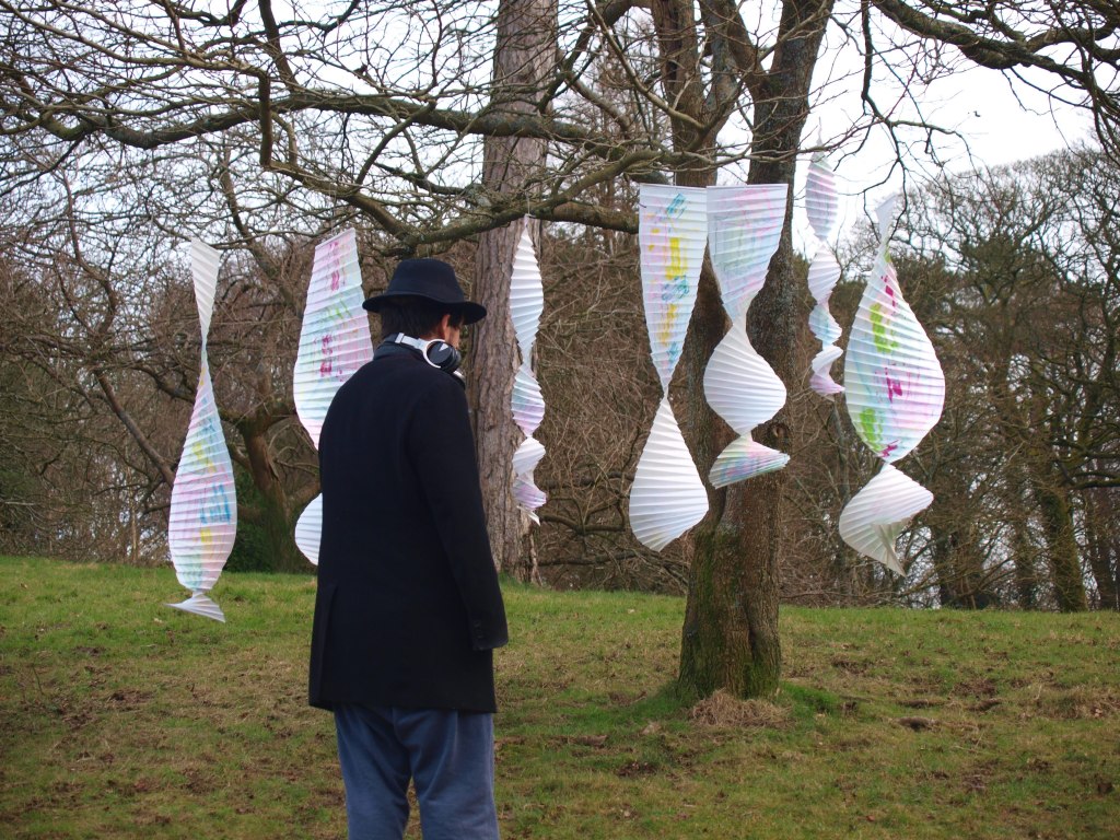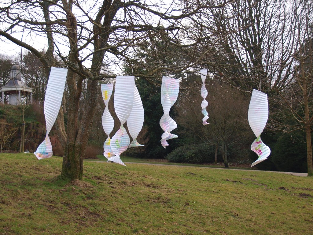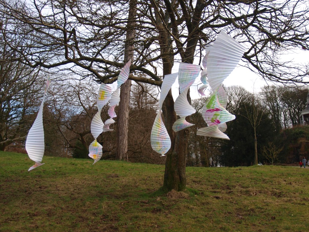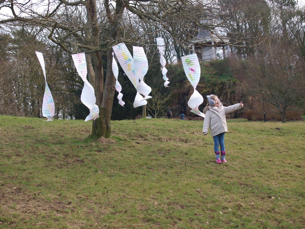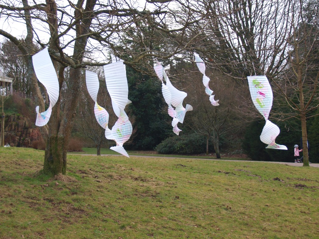 I went to the park today, not just for a walk but to take the opportunity as it was a fair weather day to put up the art that I have been making and watch the reactions of the people watching the art.