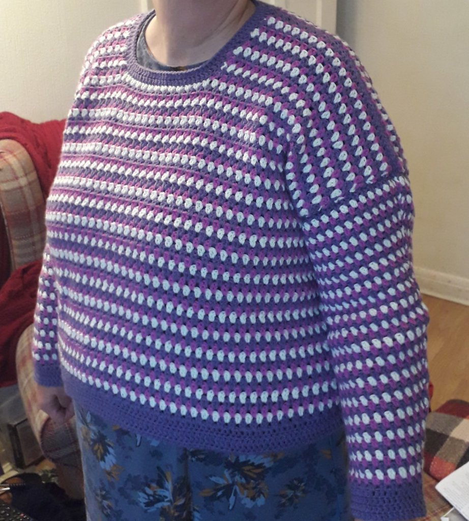 I can’t see the point of crocheting a flat piece just to sew it together afterwards. So here is my first sleeve, not finished but underway