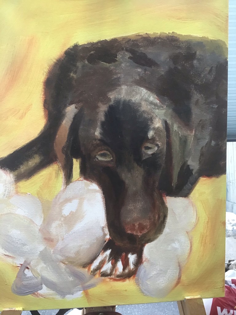 Just prior to lockdown one of my friends lost her dog to liver disease apparently it is common in labrador retrievers. My task is now to produce a painting that reflects this dogs character