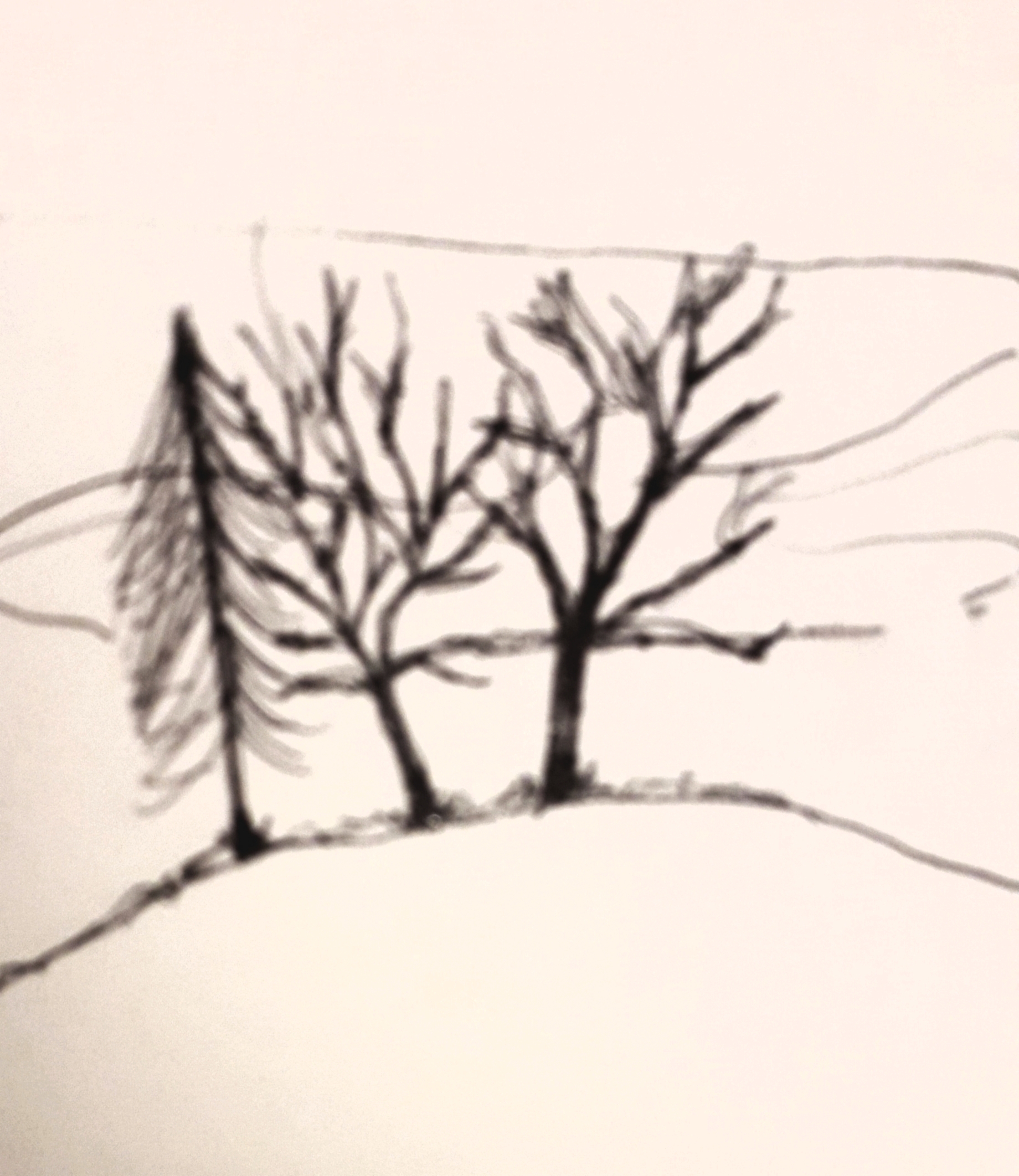 Going into uni today I could see silluettes of trees on the hillside with streaks of red sky behind it looked beautiful but it is impossible to take a photograph when you are driving, but the idea is there.