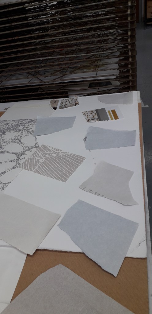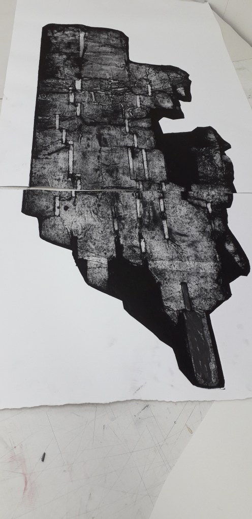 I have been making images for printing using photos I’ve taken whilst out walking. These are of barriers, I have then manipulated them in procreate to form new images. These have then been screen printed onto kozo 25gm paper.
