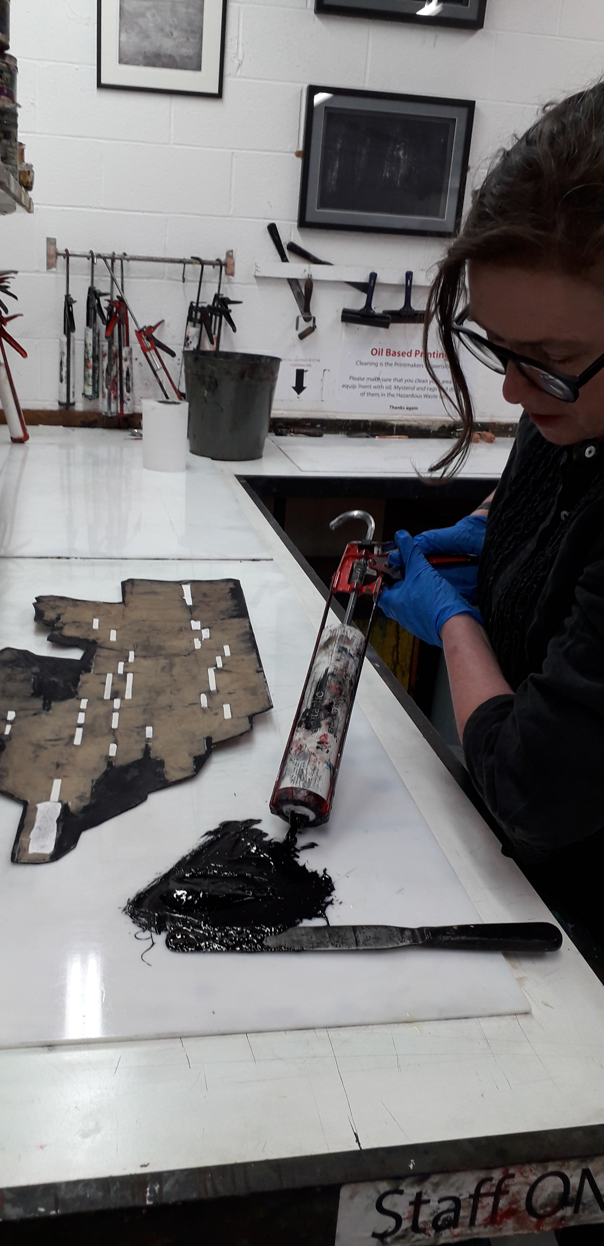 Large press to be usedFirst practice on cartridge paperSecond practice also on cartridge paper Claire may make many practice runs before she is satisfied with the image.