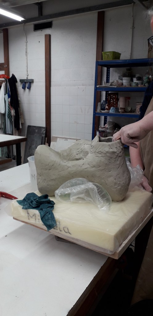 Then this afternoon I have been in ceramics having the health and safety talk come tour of the ceramic studio. Some has come back to me as Geoff told us what to do I recognised and remembered what I had done previously. We use clay from our workshop and can either use the equipment in the ceramic studio or in our studio then transfer to ceramics when we are ready for firing, glazing etc.