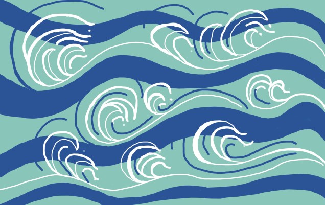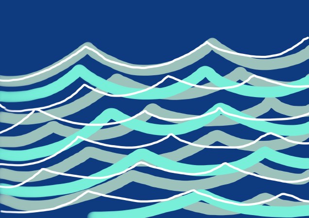 When a special friend comments they can see a wave in your work it can have an influence n what you do next. I hope to change these digital sketches to Lino prints in the near future.